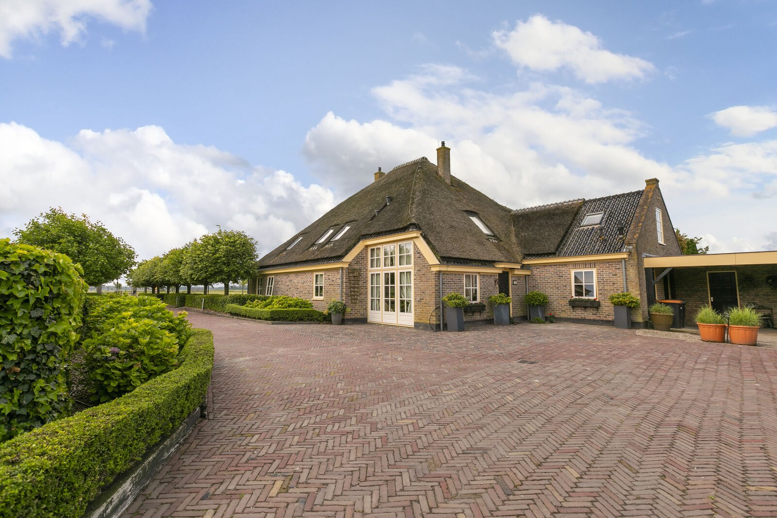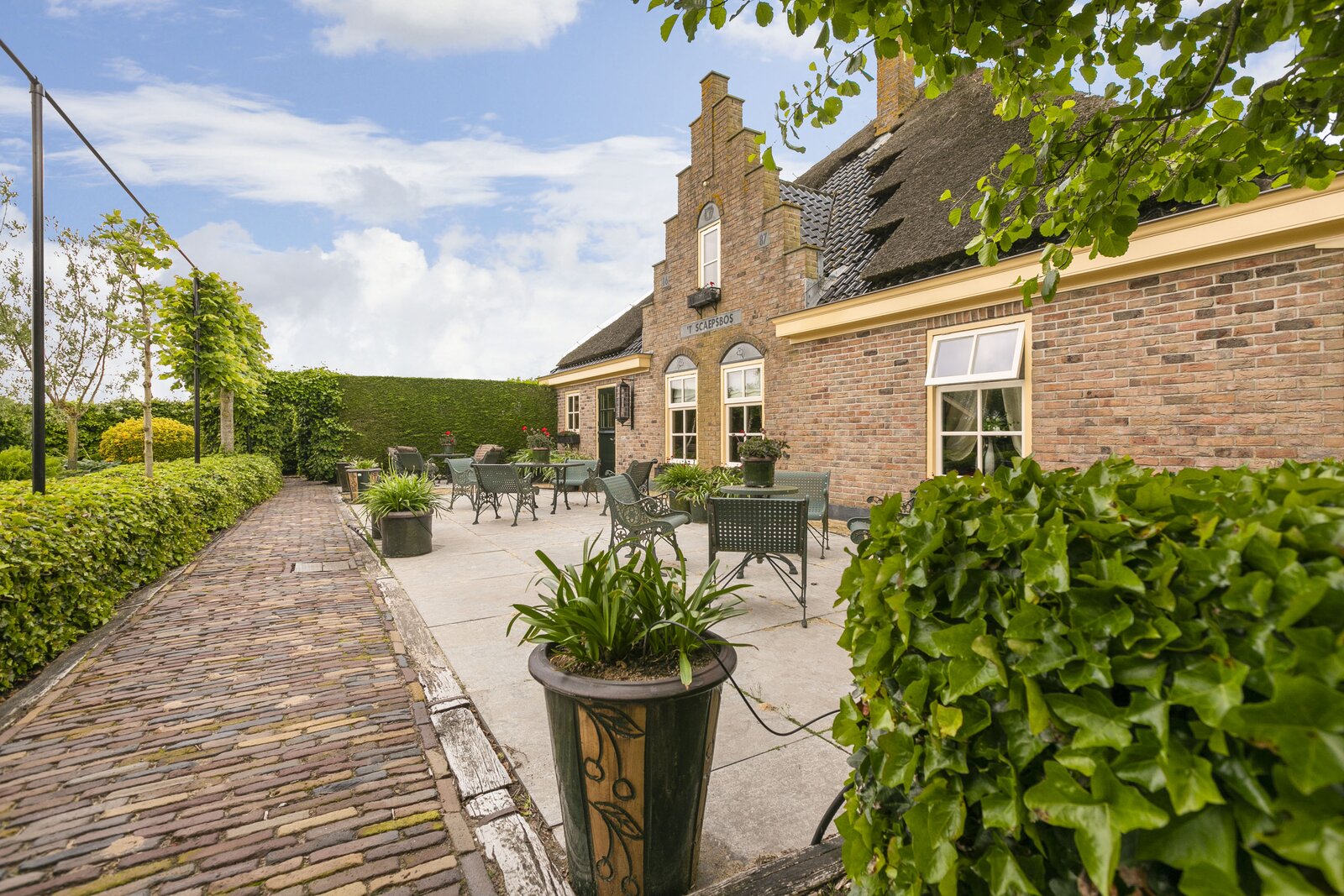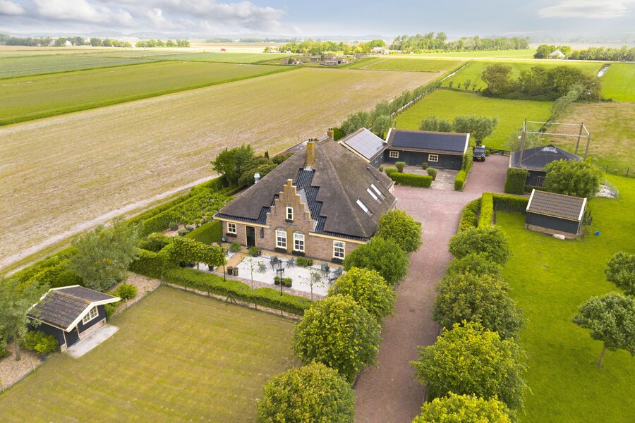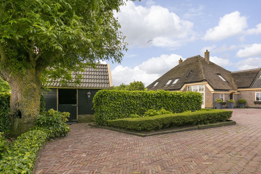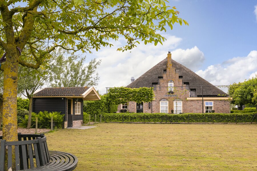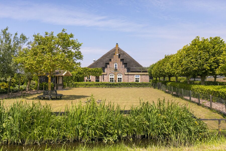 Deze fraaie rietgedekte stolpboerderij met trapgevel is in 2002 geheel opnieuw opgebouwd en heeft een nokhoogte van 18 meter. De woning beschikt over een binnenzwembad en sauna, een royale woonkeuken voorzien van professioneel horeca-apparatuur en diverse slaapkamers op de begane grond. De bovenverdieping kan nog geheel naar eigen wens ingedeeld worden.