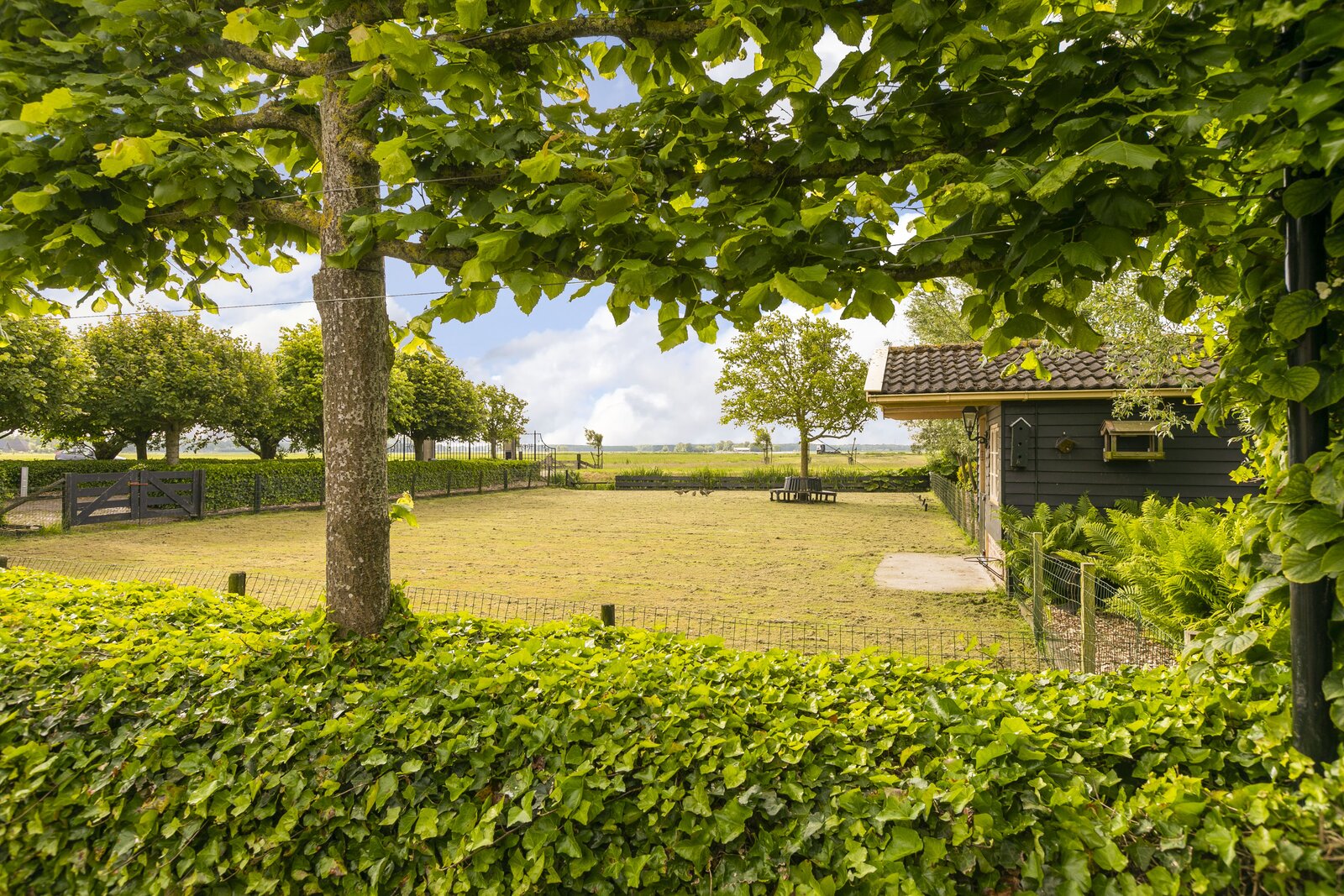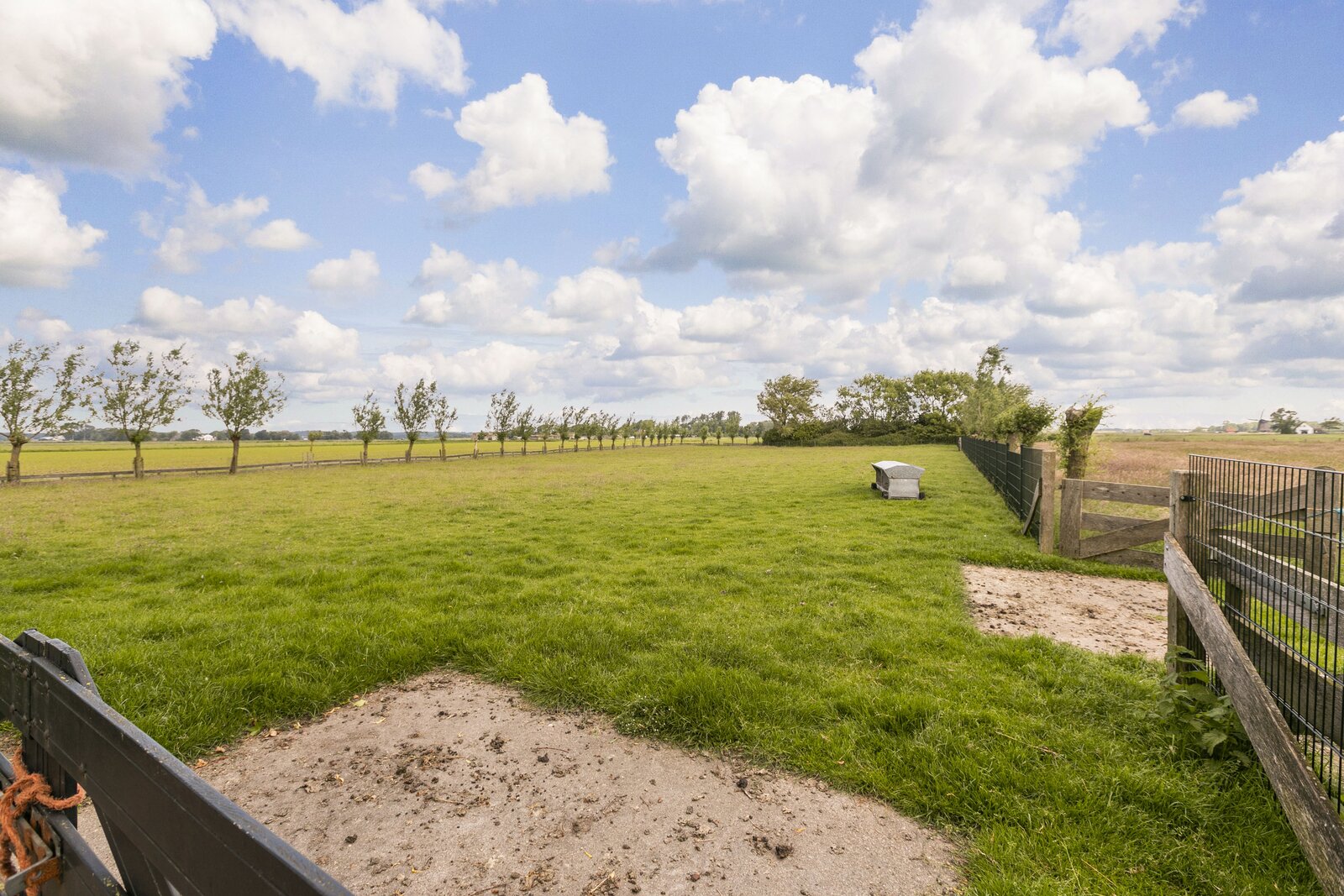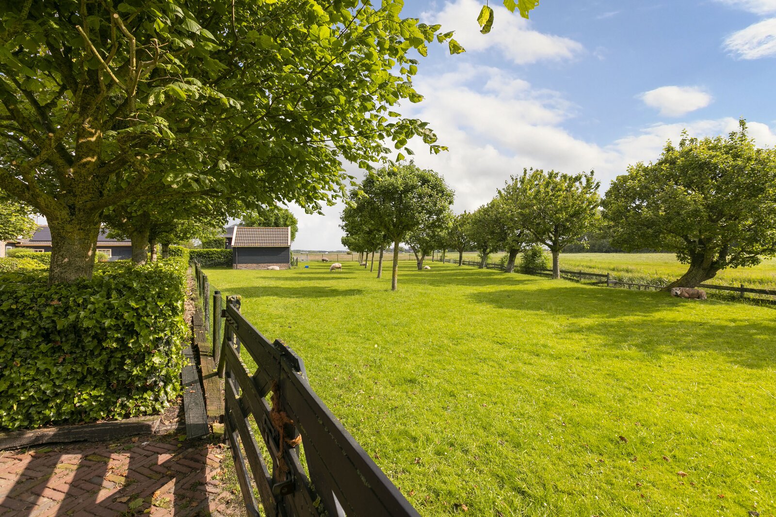Achter en naast de woning is grasland gelegen die deels opgedeeld is in diverse percelen voor paarden en kleinvee. Ook is er een deel voorzien van fruitbomen. Alle weilanden zijn keurig voorzien van degelijk hekwerk.
