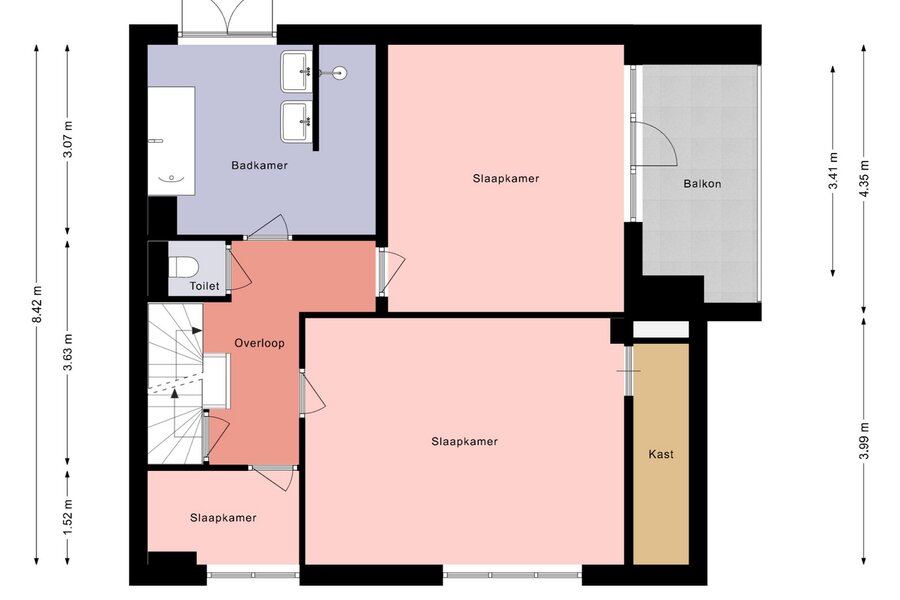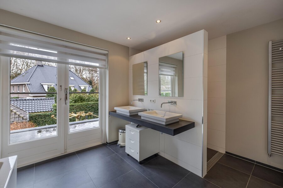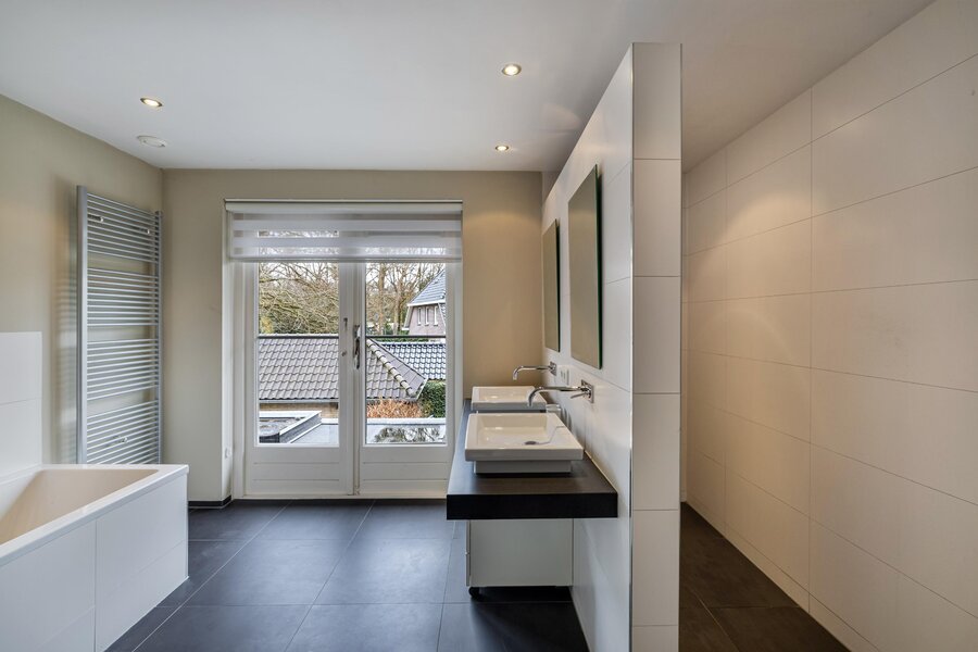 Overloop met toilet, ruime slaapkamer aan de achterzijde met balkon, 2e ruime slaapkamer met doorloop naar een inloopkast. Kleine slaapkamer aan voorzijde welke nu in gebruik is als inloopkledingkast. Gemoderniseerde badkamer met een heerlijk ligbad, dubbele wastafel, inloopdouche en handdoekenradiator.