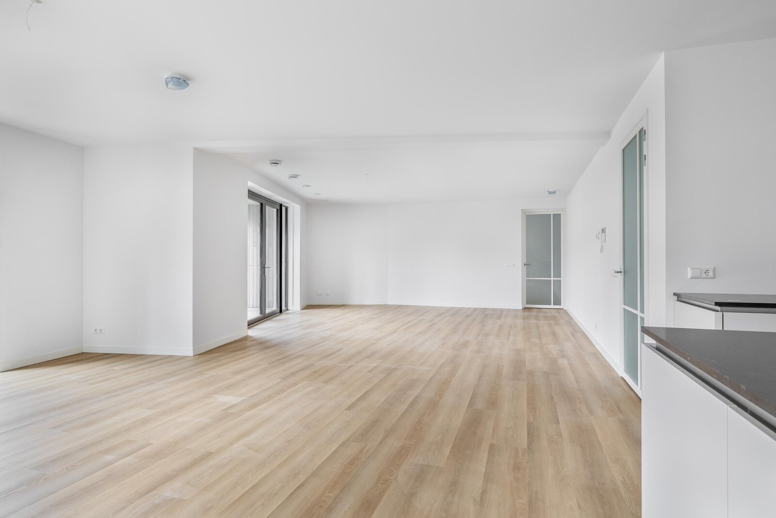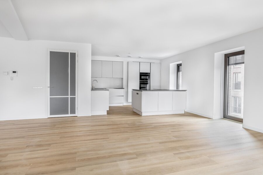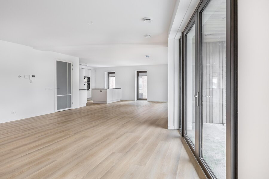 The spacious living room is bright and generously laid out. Thanks to the large windows and sliding doors, you enjoy pleasant views of the surroundings and direct access to the balcony, creating a seamless connection between indoor and outdoor living.