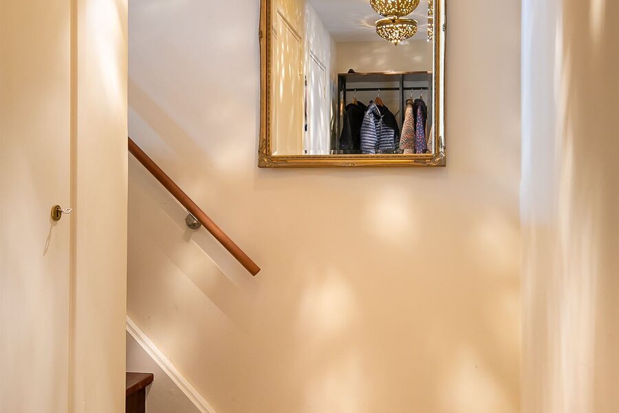 Betreed de woning via een statige hal die leidt naar de leefruimtes. De woonkamer nodigt uit tot ontspannen bij de haard of het genieten van het daglicht door de grote ramen.