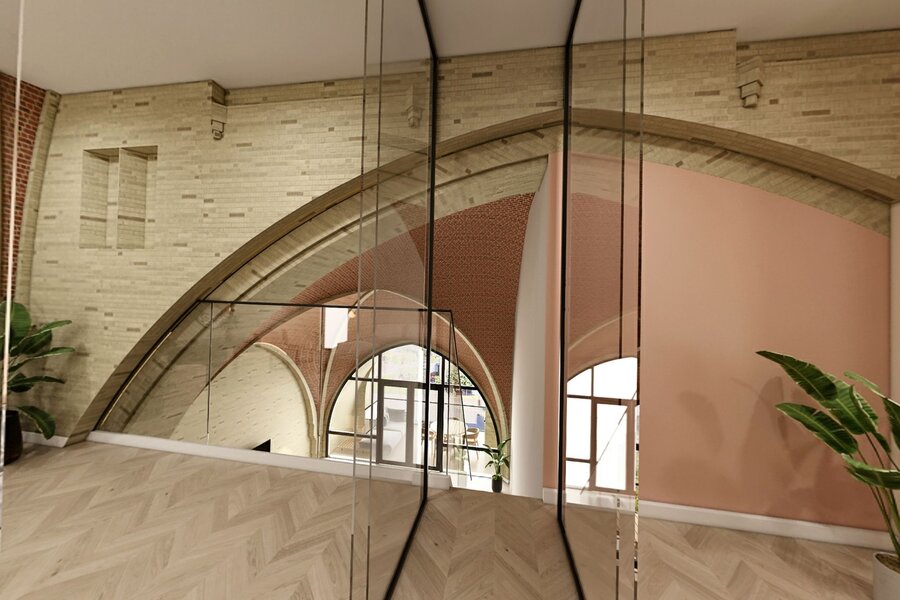 Het appartement heeft een woonoppervlak van circa 179 m², verdeeld over een ruime benedenverdieping en een multifunctionele entresol. De living is ruim en door de grote ramen in de spitsboog is er veel lichtinval. Vanuit de woonkamer loop je via een schuifpui naar het balkon van circa 13 m² – een rustige plek met zicht op de Kruisstraat.