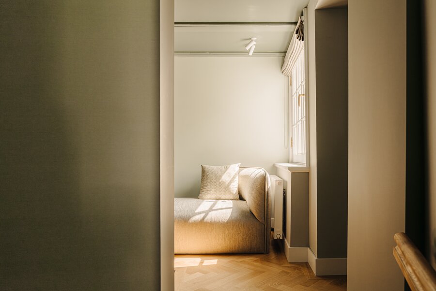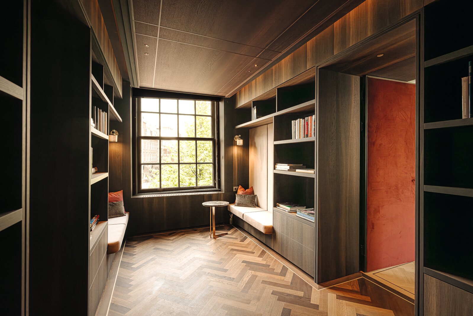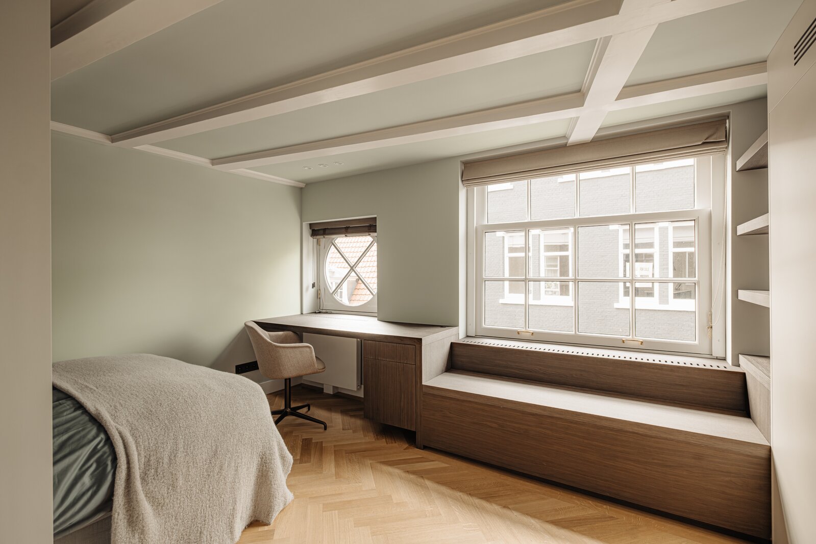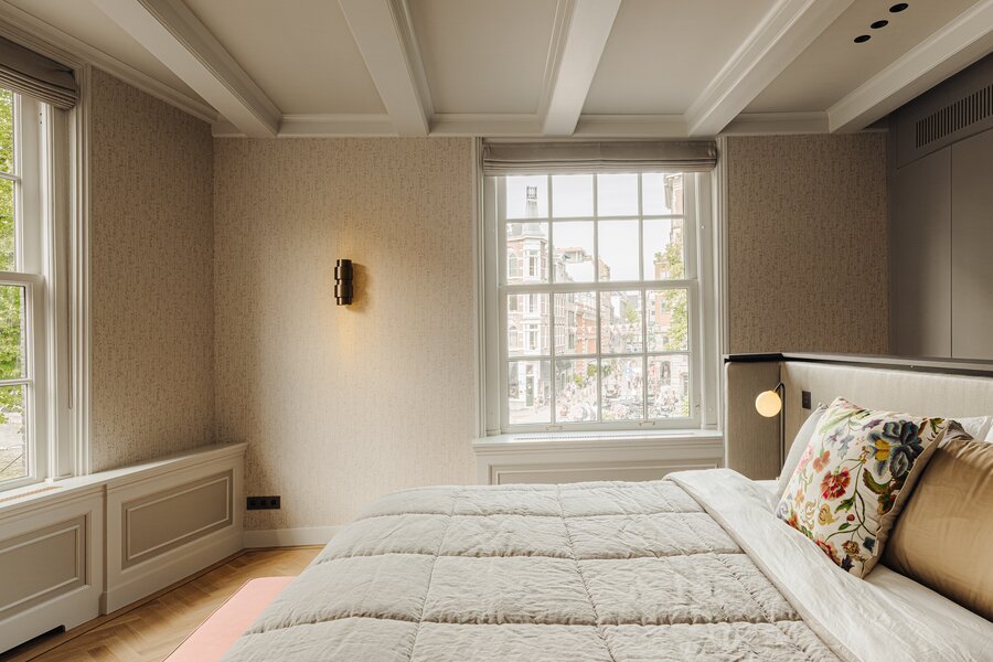 Op deze etage zijn twee ruime slaapkamers met prachtig zicht over de gracht. De luxe gastenbadkamer beschikt over een ligbad, inloopdouche en dubbele wastafel.
