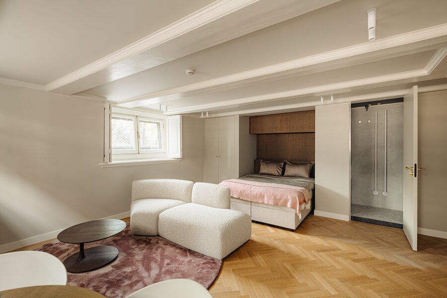 Op deze woonlaag is tevens een volledig afsluitbare studio met eigen keuken en badkamer en een separaat wc: ideaal voor een au-pair of logees.