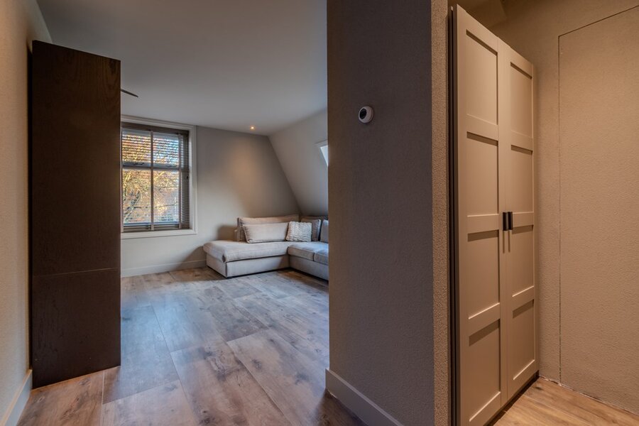 Boven deze verdieping bevindt zich de vliering, een royale ruimte die ideaal is voor opslag. Hier is tevens het warmteterugwinapparaat geplaatst, waardoor de woning efficiënt wordt verwarmd en geventileerd, voor optimaal comfort en duurzaamheid.