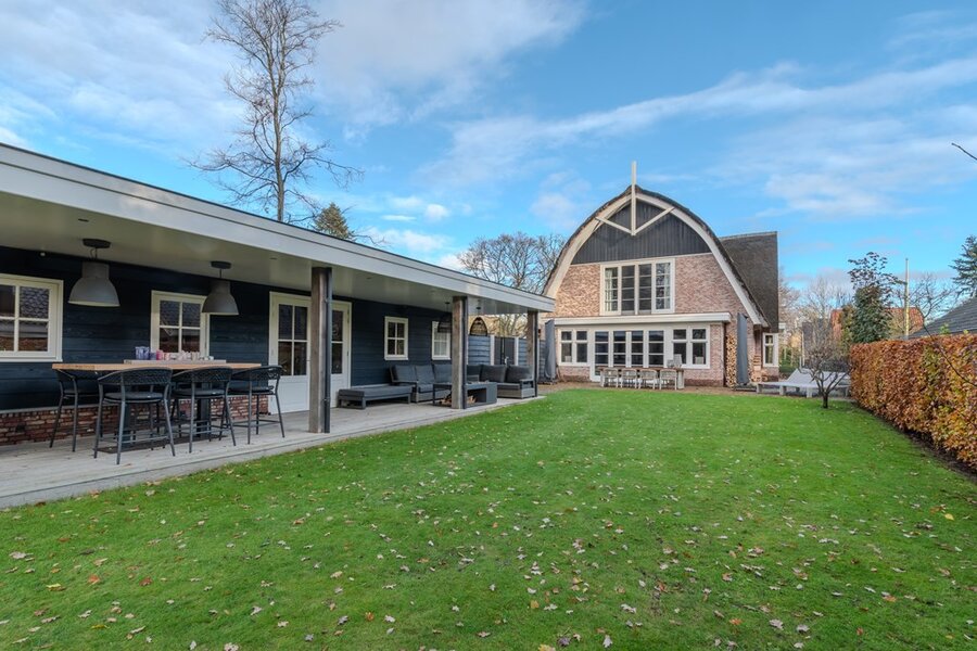 Stijlvol en luxe wonen in deze moderne, geheel gemeubileerde rietgedekte villa met hotel-chic allure nabij het bos.
