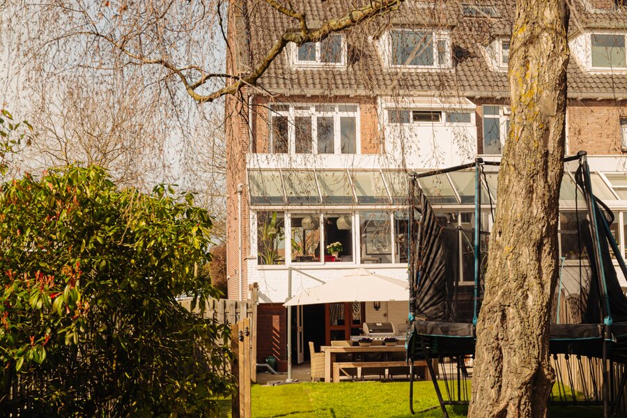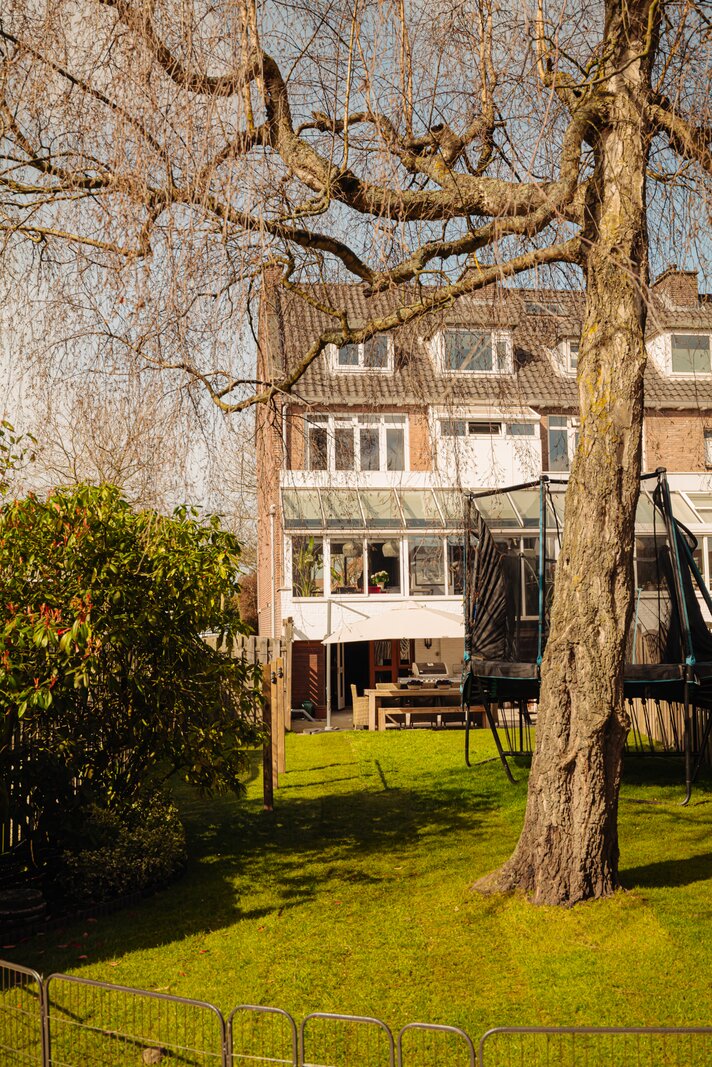 Zeer riante hoekwoning, verdeeld over vier volwaardige woonlagen, met vijf slaapkamers, twee badkamers en een royale family room in het souterrain. De lichte woonkamer met open haard en serre sluit aan op een zonnige achtertuin op het zuidoosten.