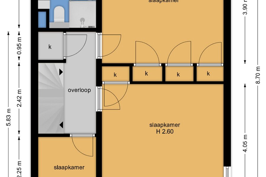 - 5 slaapkamers, 2 badkamers;