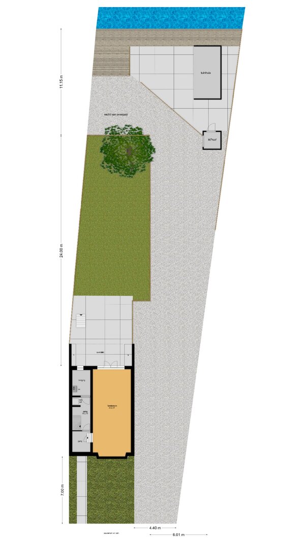 - Perceelgrootte 646 m2 inclusief zijpad;