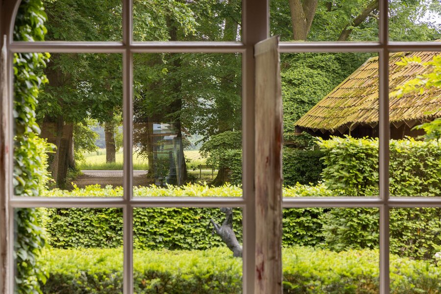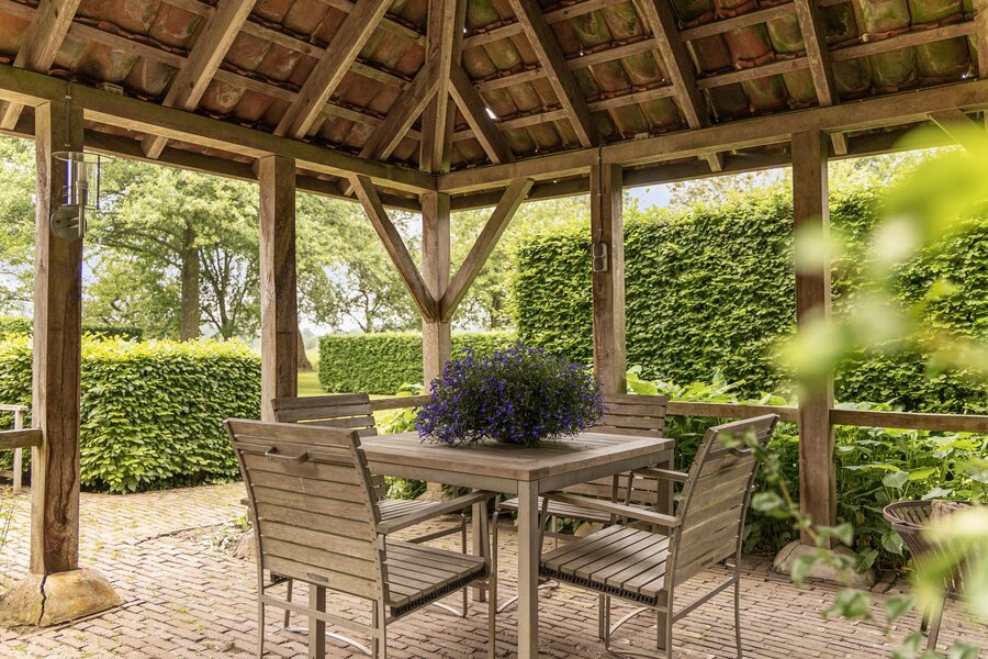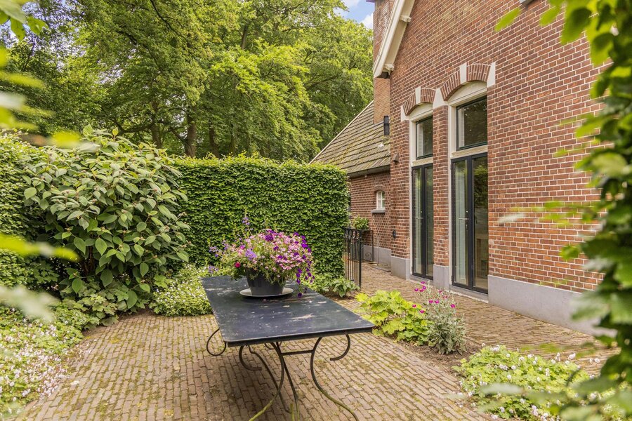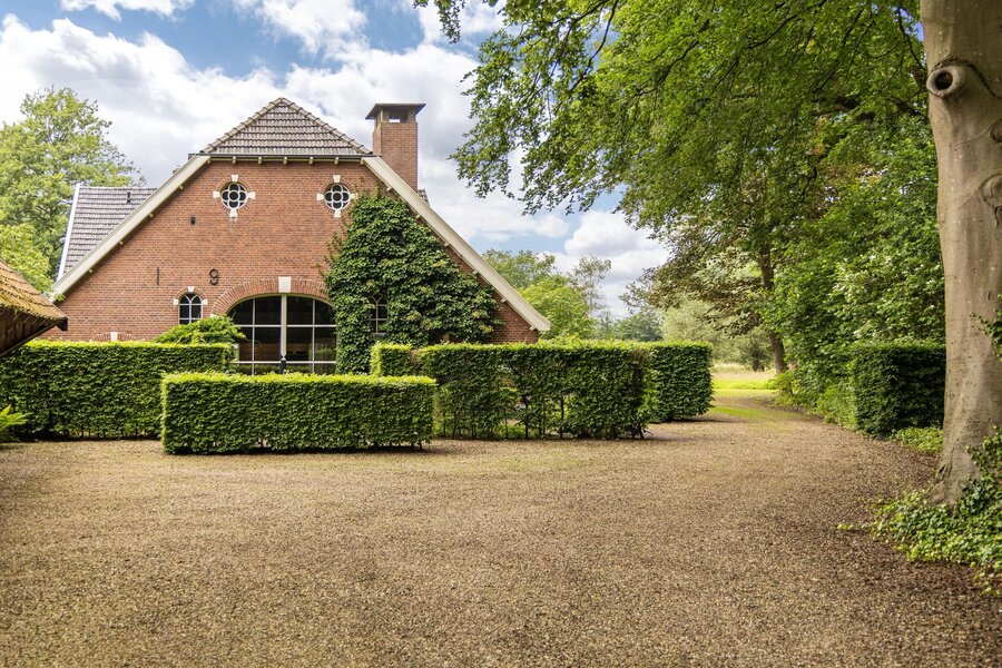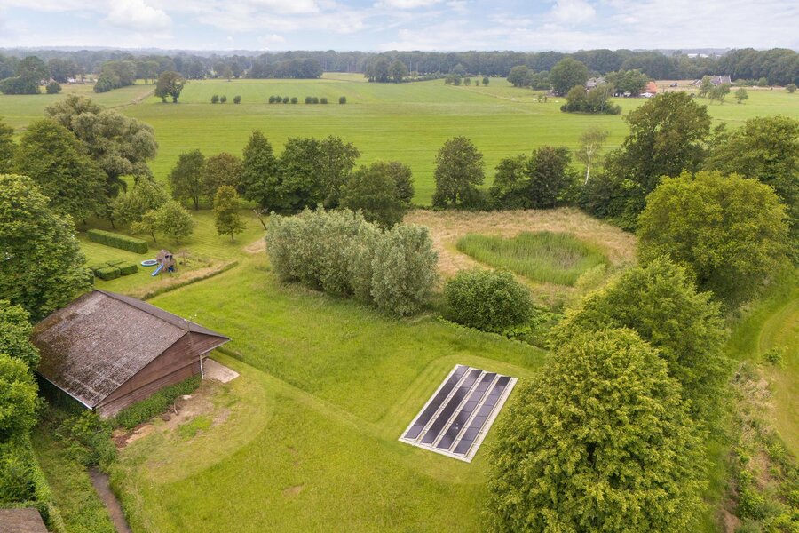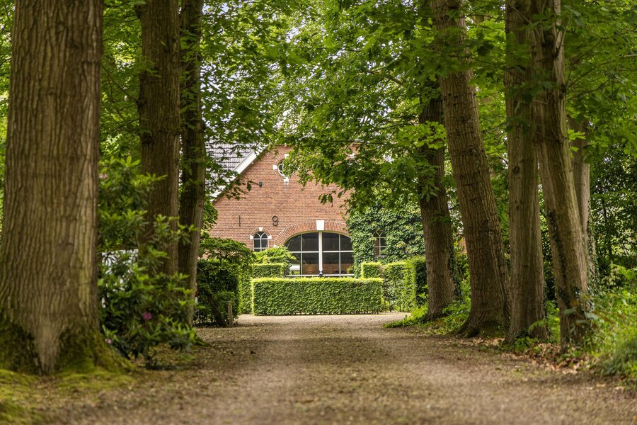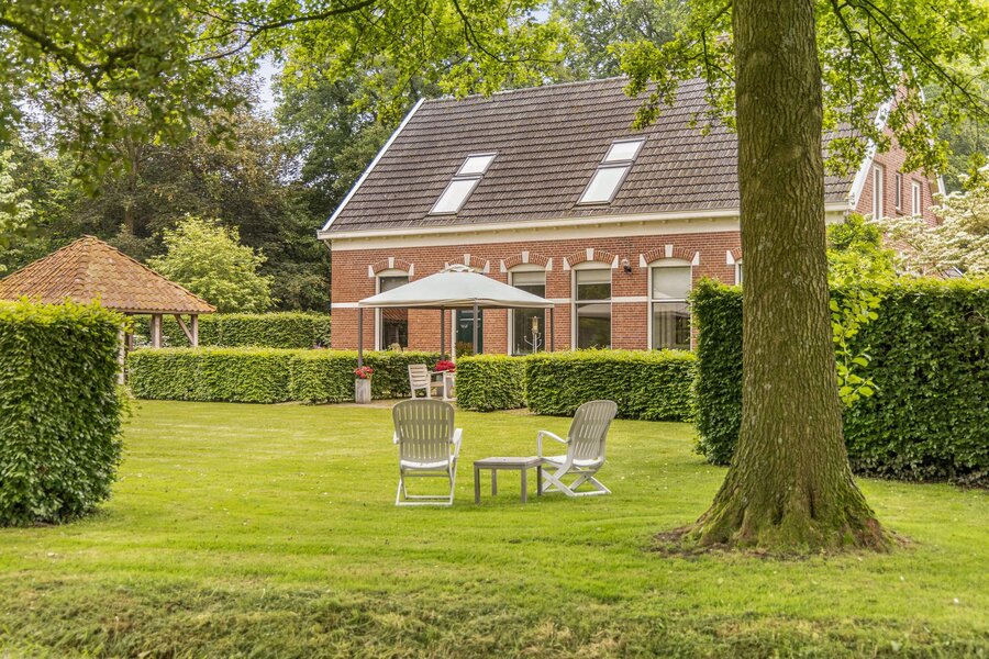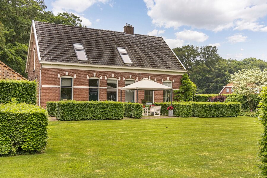 Op een toplocatie net even buiten Haaksbergen, verscholen in het groen met een fenomenaal uitzicht over landerijen naar de dorpsrand, ligt deze prachtig verbouwde volumineuze woonboerderij met enkele bijgebouwen op een perceel van circa 1 hectare.