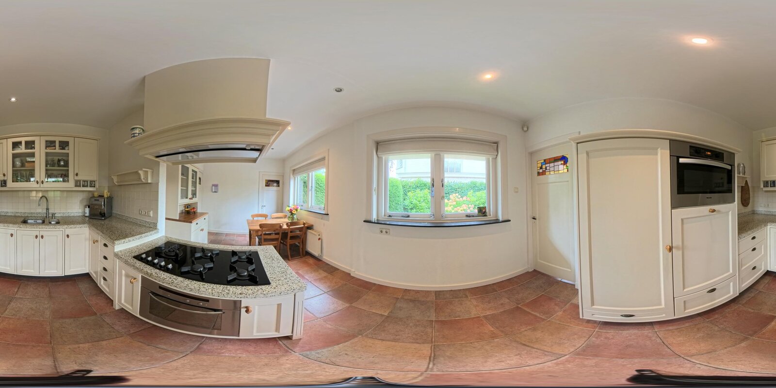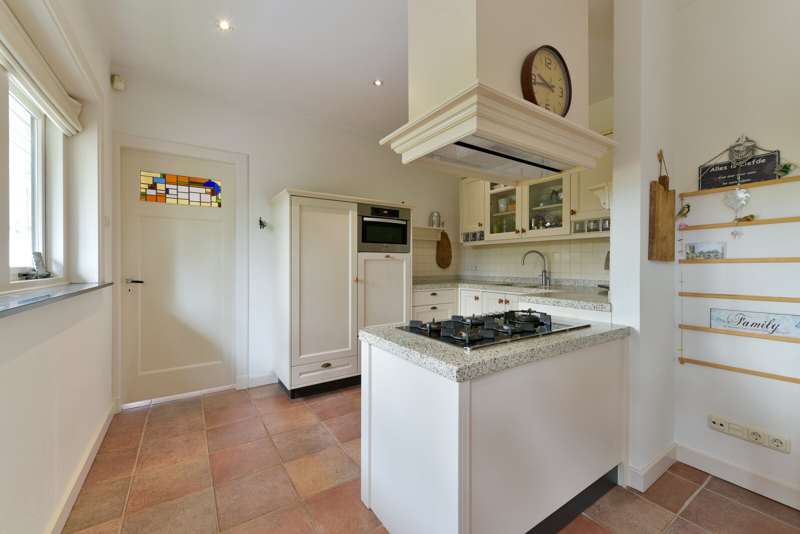 - Handgemaakte keuken in stijl van het huis met inbouwapparatuur.