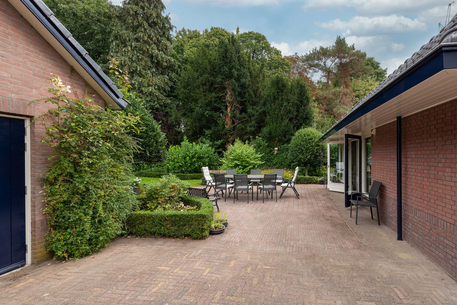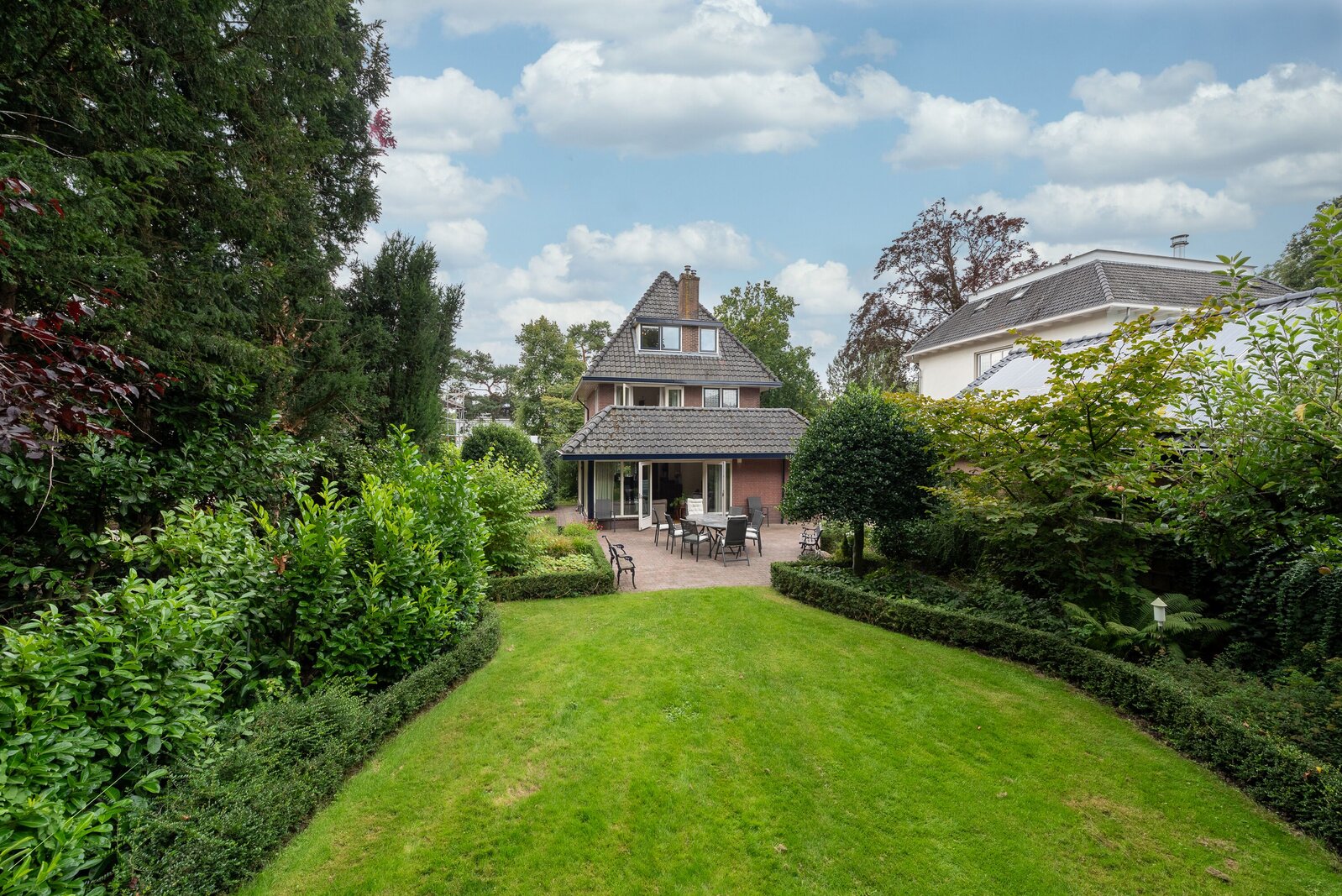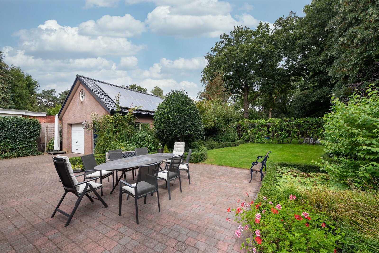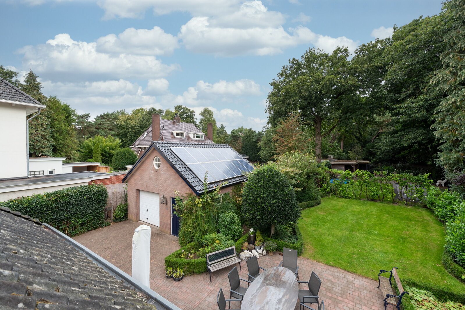 De tuin rondom de woning is werkelijk een oase van rust en groen. Volgroeid, goed onderhouden en met veel privacy. Door de ligging en omvang is er op elk moment van de dag wel een zonnige of juist schaduwrijke plek te vinden. De beleving van het omliggende groen is overweldigend.
