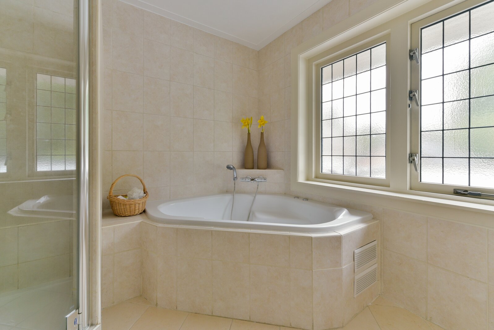 - Glas-in-loodramen gezet in dubbele beglazing.