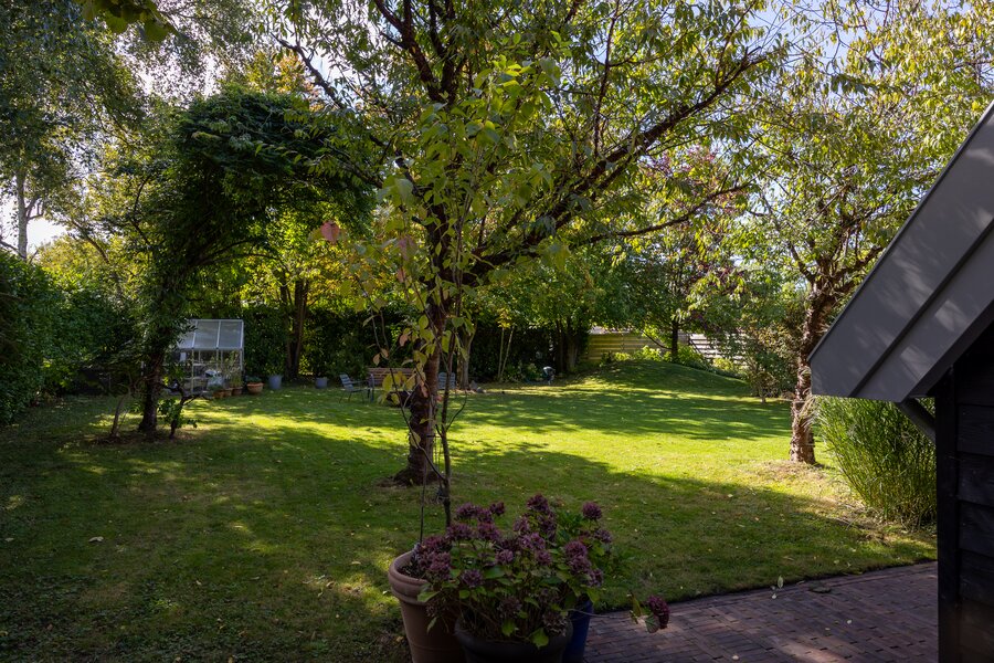 • Vrijstaande berging van 12 m² met overkapping en bergvliering.