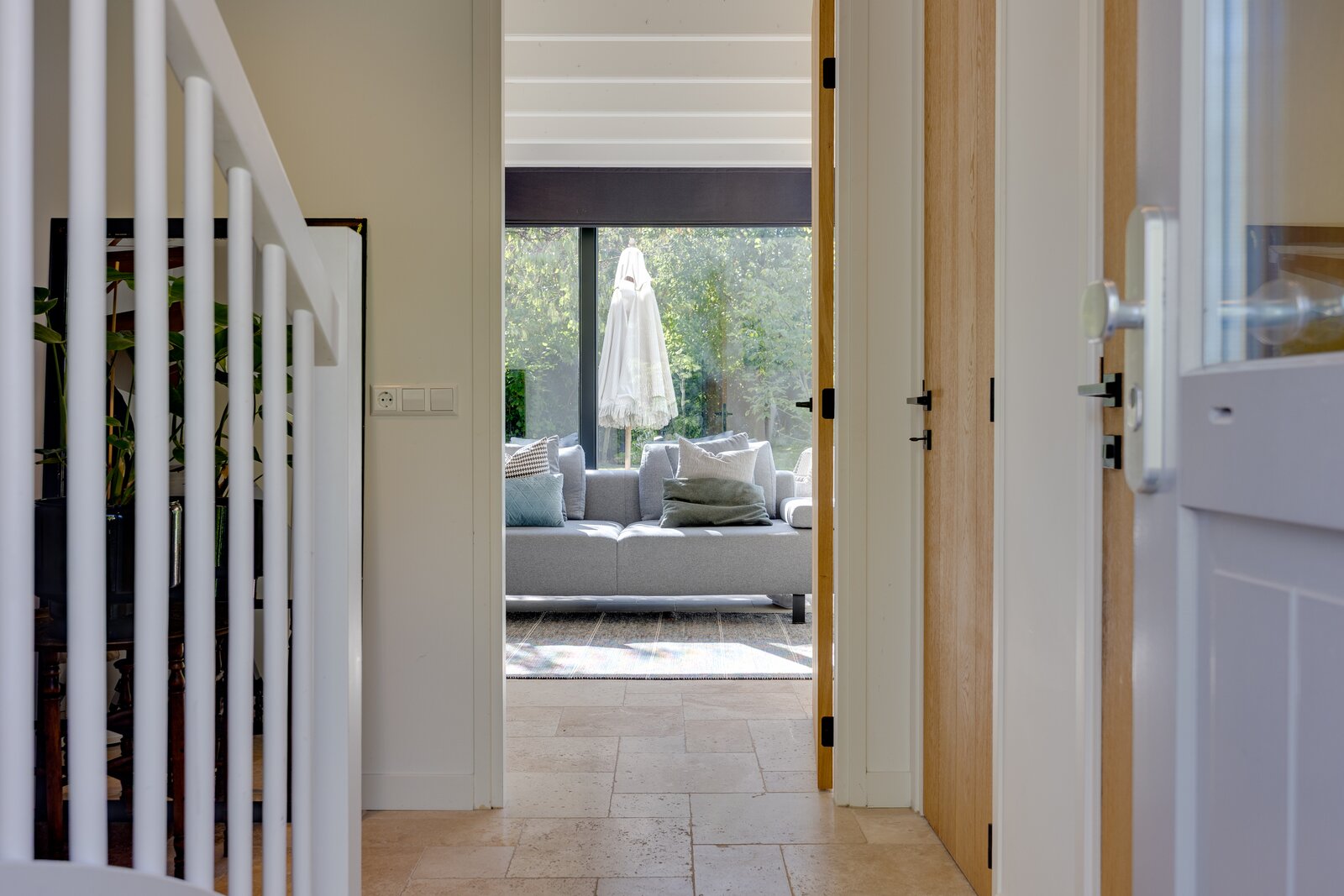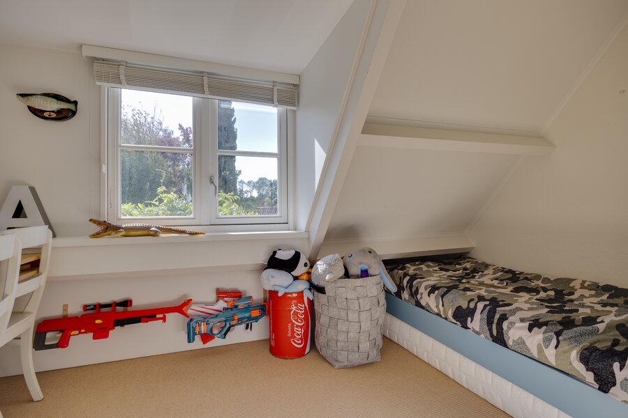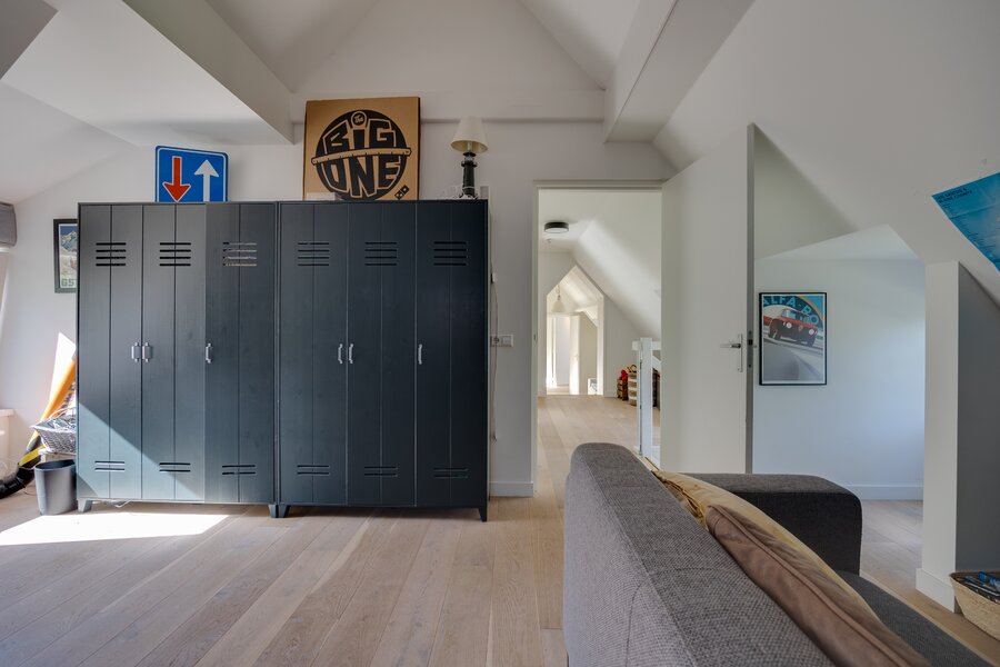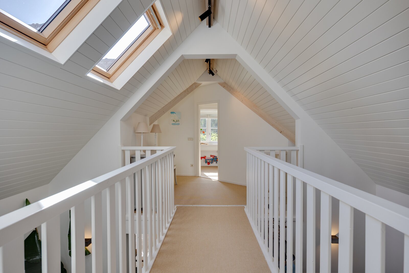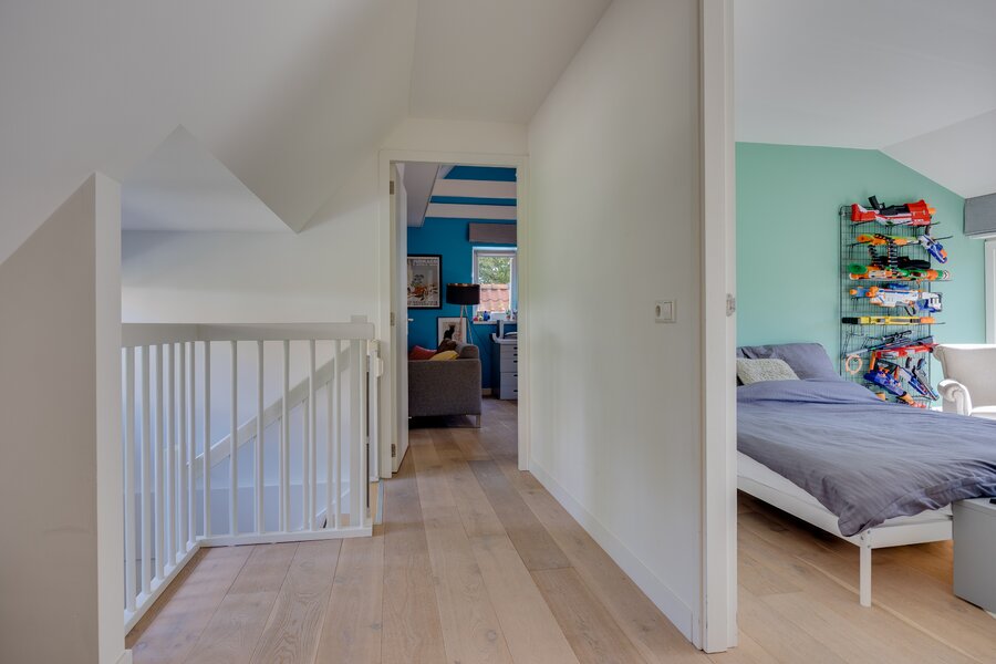 Eerste verdieping: De verdieping is middels twee verschillende trappen te bereiken (vanuit de centrale hal en de woonkamer) en beschikt dan ook over twee overlopen waarvan één met twee dakramen en vaste kasten. Op de verdieping zijn tevens vier ruime slaapkamers gesitueerd, allen voorzien van dakkapellen of gevelramen die zorgen voor een prachtige lichtinval.
