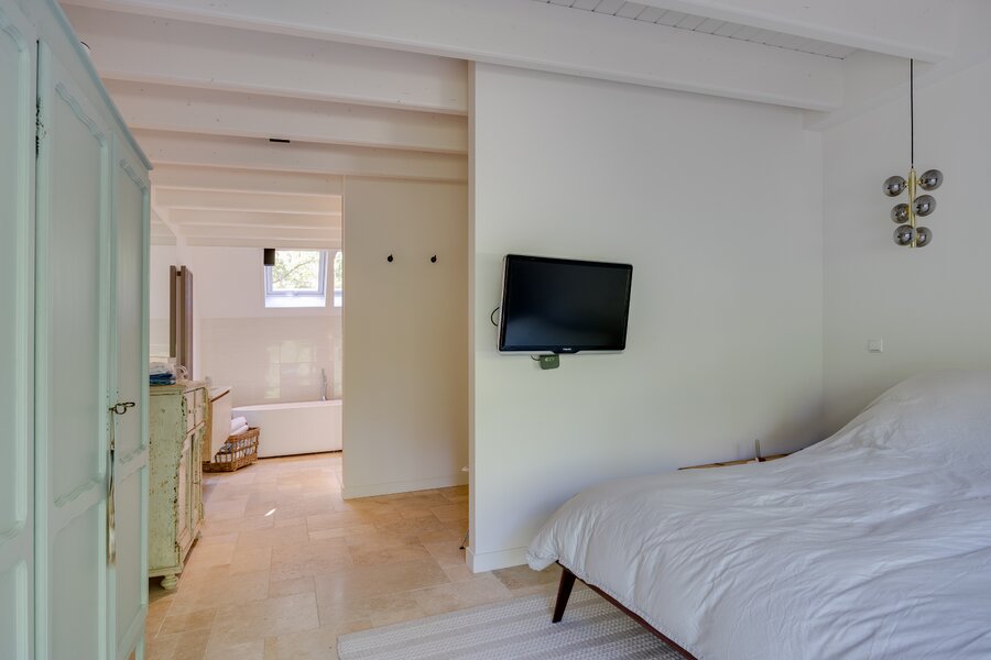 Vanuit de zitkamer heeft u toegang tot een royale slaapkamer met badkamer en-suite. De slaapkamer beschikt over een schuifpui naar het voorterrein. De ruime badkamer is luxe afgewerkt en beschikt over een ligbad, inloopdouche, wastafelmeubel en designradiator.
