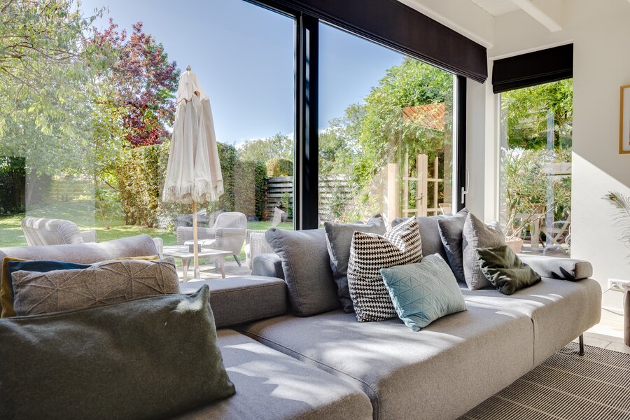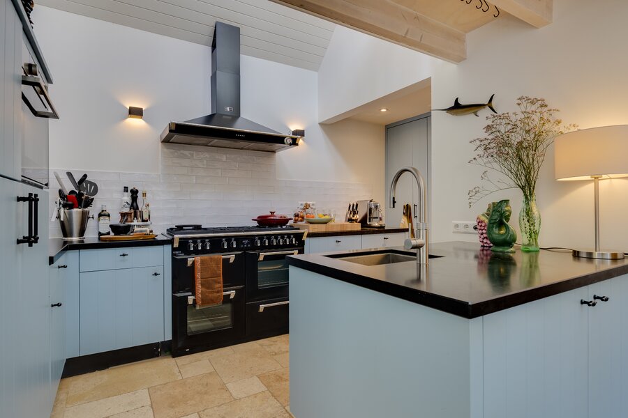 Vanuit de zitkamer heeft u tevens toegang tot de ruime en lichte woonkamer met twee keer openslaande deuren naar de heerlijke achtertuin, spiltrap naar de verdieping en doorloop naar de landelijke keuken welke is voorzien van een luxe keukenopstelling met diverse inbouwapparatuur waaronder een 5-pits fornuis met 4 ovens, combimagnetron, vaatwasser, quooker, hoge koelkast en hoge vriezer.