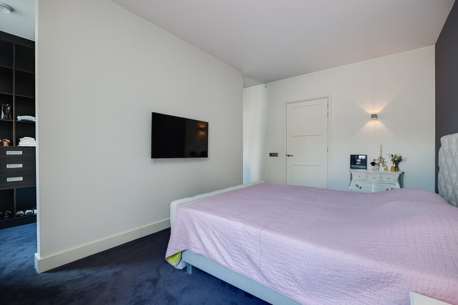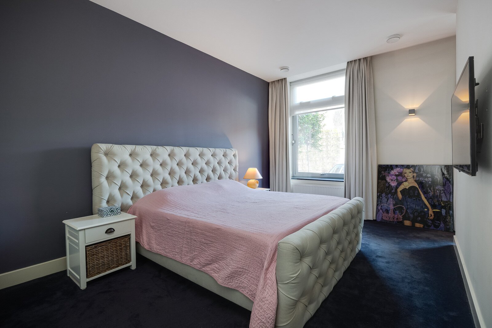 De slaapkamer is eveneens gelegen aan de Lange Putstraat en beschikt eveneens over grote raampartijen. Ook hier treffen we weer gestucte wanden en plafonds alsmede inbouwspots aan. Onderdeel van de slaapkamer is een zeer riante walk-in-closet, eventueel is de slaapkamer op te splitsen in twee slaapkamers. Een impressie hiervan is bijgevoegd in de tweede optionele plattegrond.