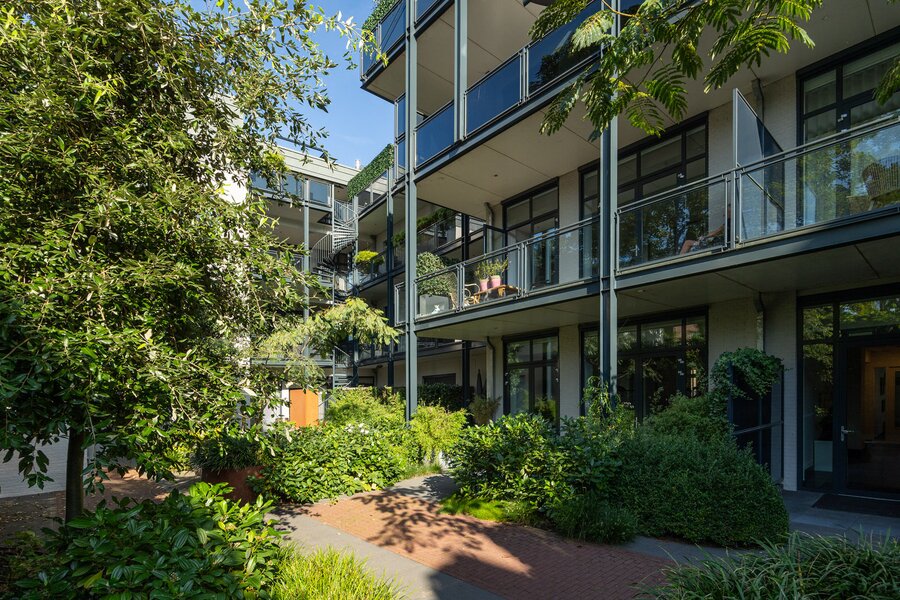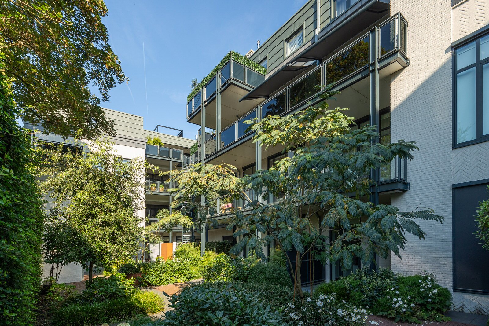 De binnentuin is een exclusieve en aantrekkelijke oase van rust door het gebruik van heldere, krachtige lijnen en bijzondere details. De duurzame materialen, het eigentijdse tuinontwerp en de beplanting is de inzet geweest tot het creëren van een bijzondere sfeer. Hier kunt u in alle rust genieten of bijkletsen met familie, vrienden en buren.