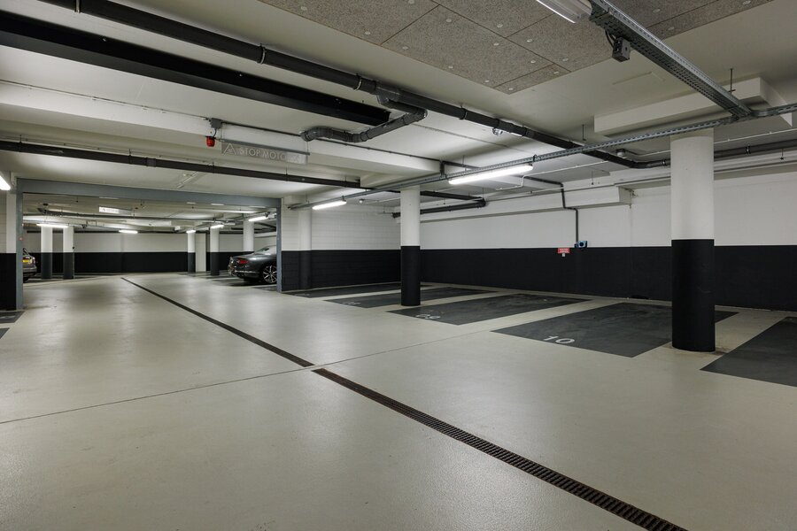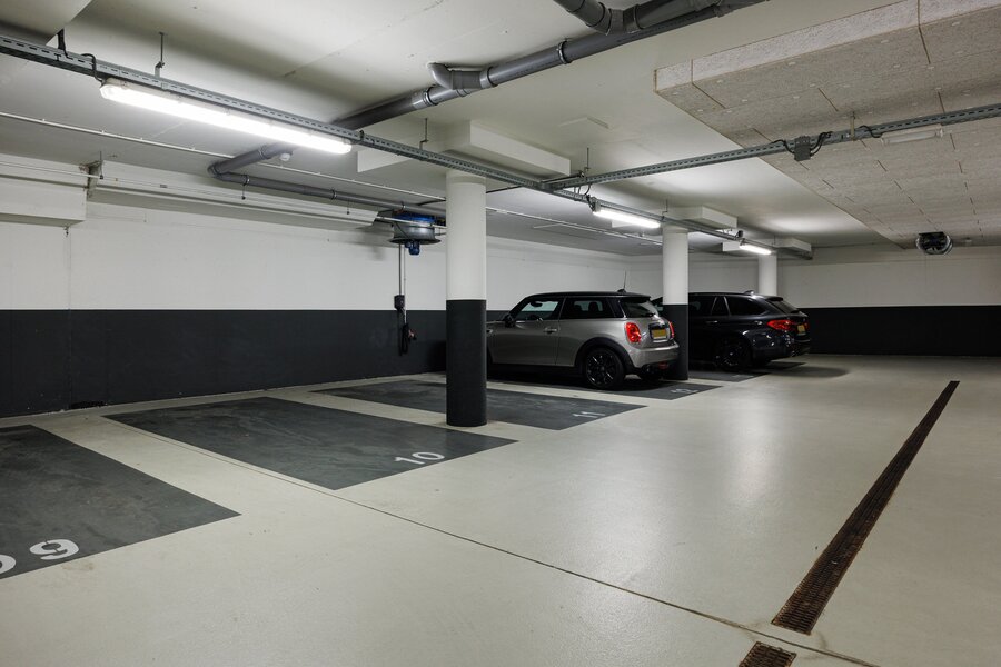 In de ruime parkeerkelder heeft u een eigen parkeerplaats en een berging tot uw beschikking.