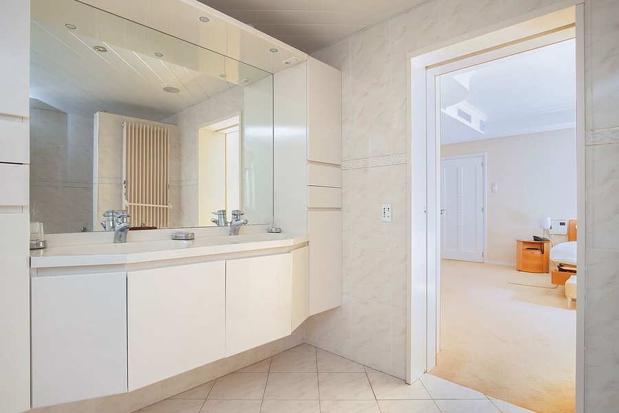 Twee forse slaapkamers (ca. 22m2 elk) delen een royale, complete badkamer, de 3e slaapkamer (de kleinste: 16m2!) ligt tussen de twee grote slaapkamers en de master studio (met inbouwkastenwand en toegang tot de en suite, zeer complete badkamer met o.a. een jacuzzi en een stoomdouche).