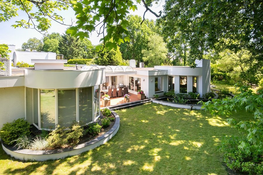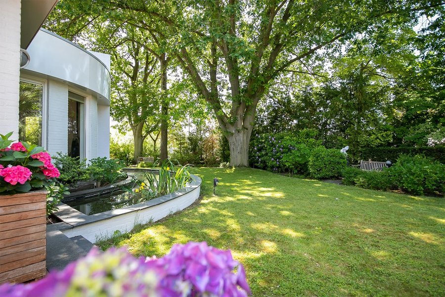 De grote verzorgde tuin, onder architectuur aangelegd, met een vijver, (deels overdekte) zonneterrassen, met veel privacy door de bomensingel rondom, maken het plaatje compleet.
