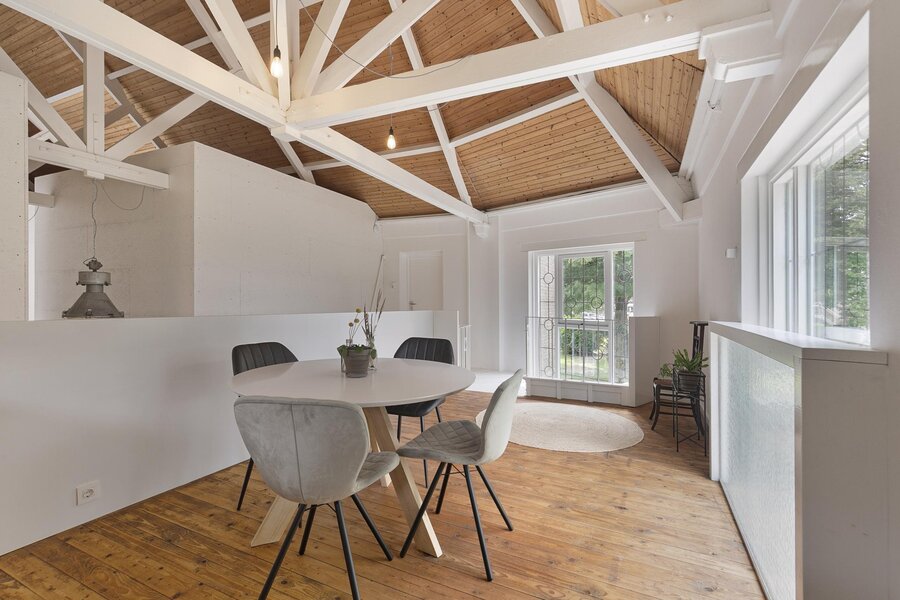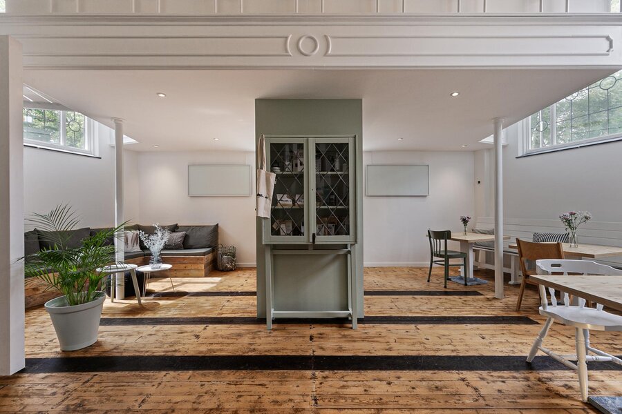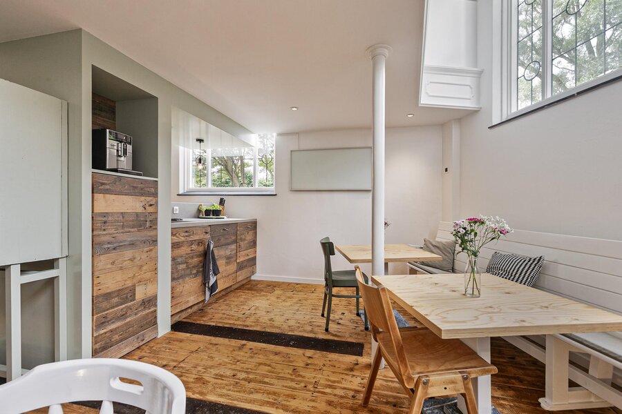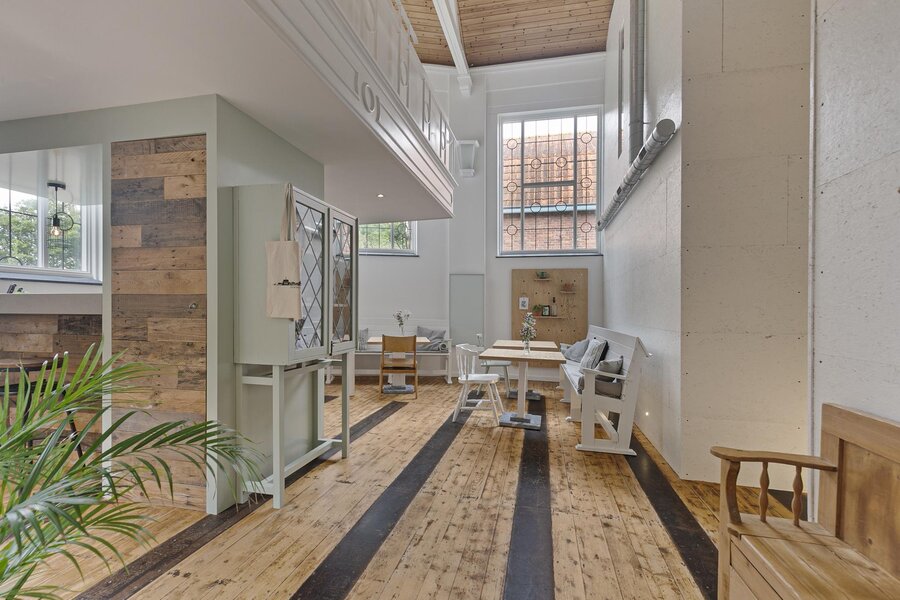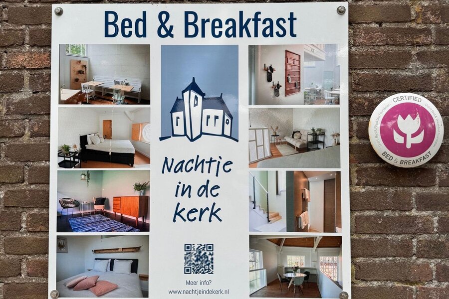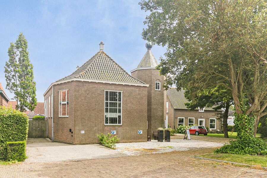 In de voormalige kerk van Vrouwenpolder op een fantastische locatie gelegen aan de weg naar strand: Ruime woning in combinatie met 4 bijzonder mooie gastenverblijven (B&B).