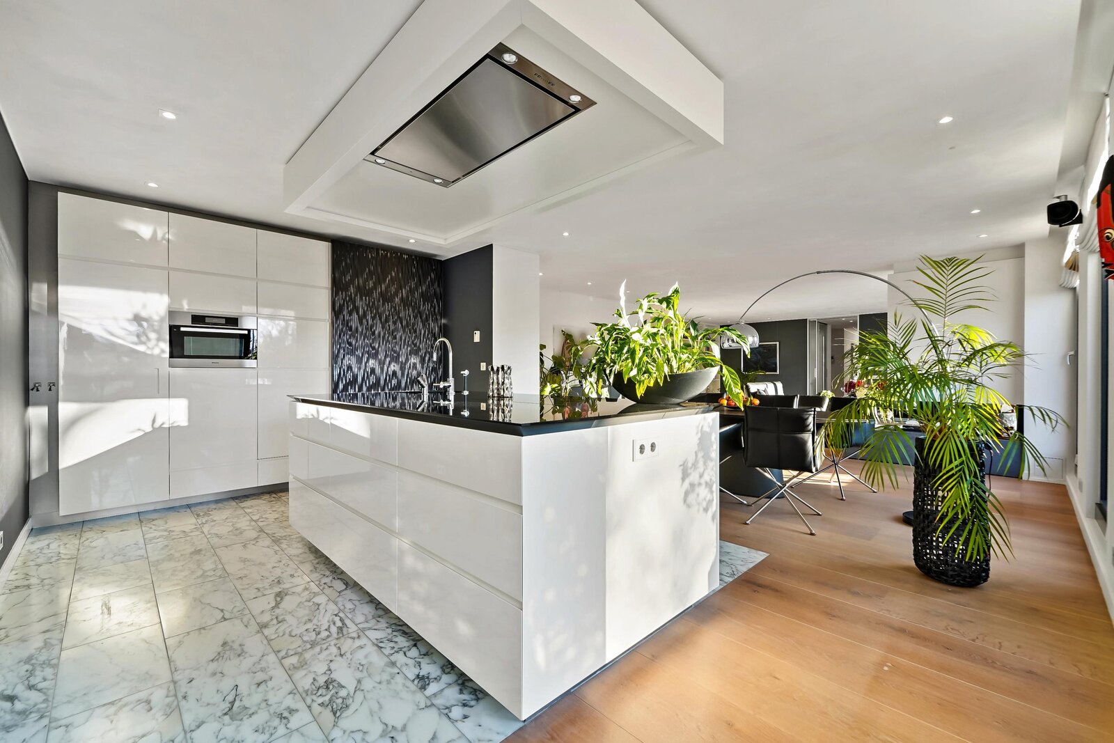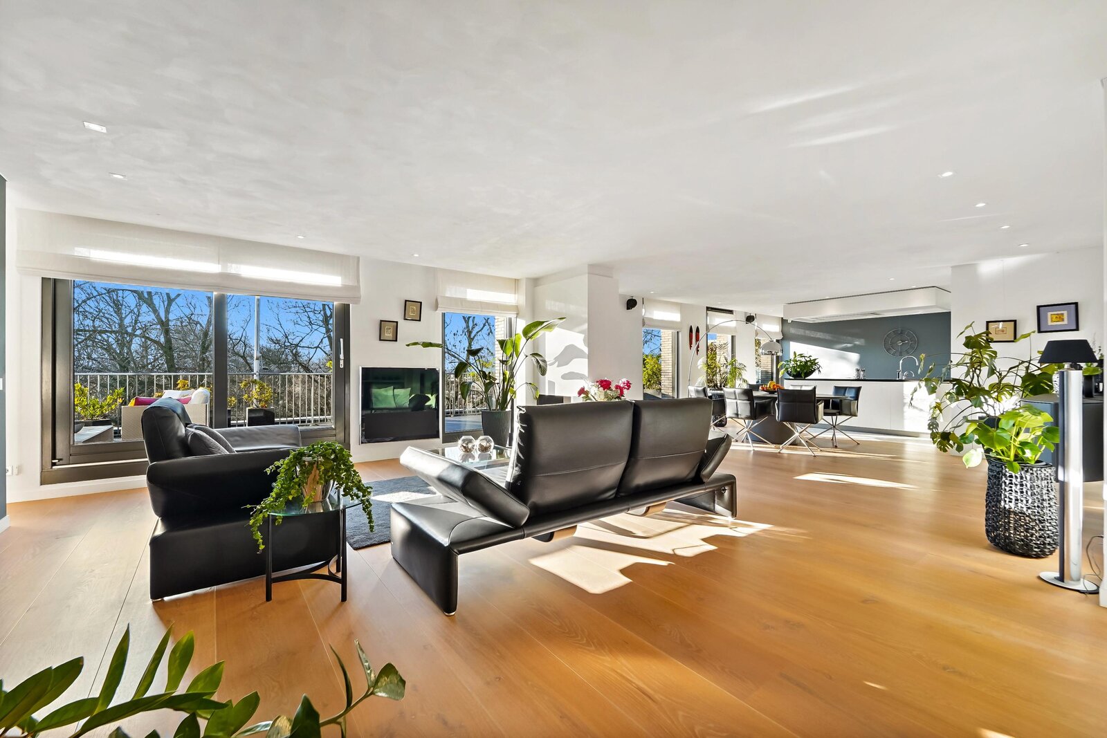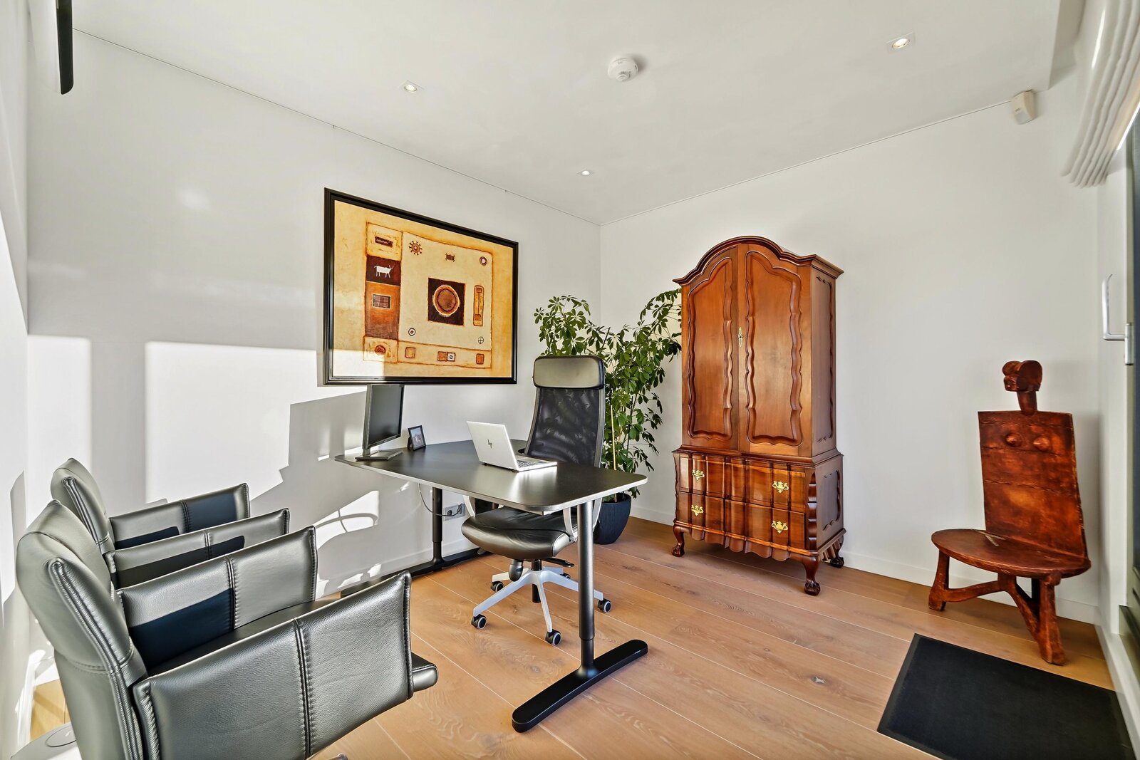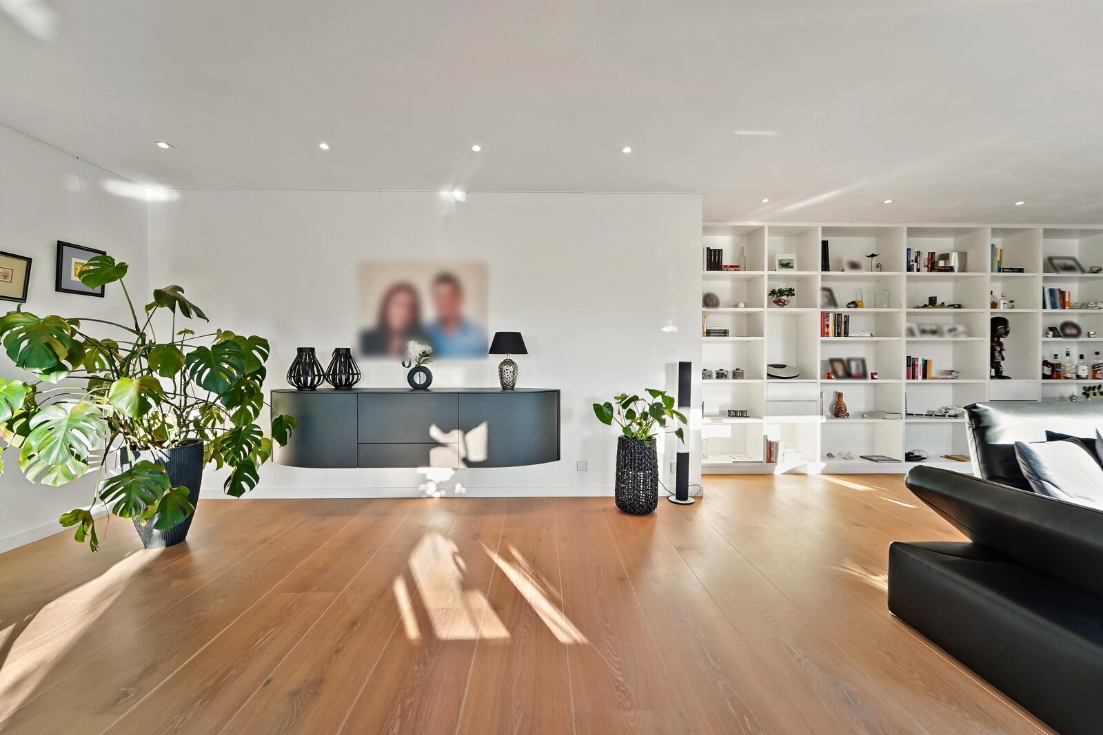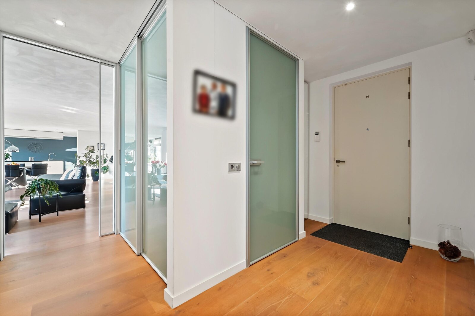 Via de stijlvolle entree met garderobe en toilet met fontein betreedt u dit exclusieve appartement. Een elegante doorloop met glazen schuifdeur leidt naar de heerlijk lichte living, voorzien van massief eiken brede vloerdelen en royale schuifpuien naar het riante terras. De zit- en eetruimte worden op natuurlijke wijze van elkaar gescheiden door de indrukwekkende, tweezijdige Boley gas-openhaard, een echte eyecatcher. De luxe keuken is een droom voor elke kookliefhebber, met een royaal kook- en spoeleiland en een volledig geïntegreerde apparatenwand, die dankzij een schuifwand desgewenst subtiel aan het zicht kan worden onttrokken. Aangrenzend bevindt zich de study, deels open verbonden met de living en eveneens direct gelegen aan het terras, de ideale plek om in alle rust te werken of te lezen. Via de gang bereikt u de privé-vertrekken. De hoofdslaapkamer is een oase van rust en luxe, met twee royale inloopkasten en een ensuite badkamer die voelt als een privéspa. Deze uitzonderlijk afgewerkte ruimte biedt een vrijstaand bad, vrijhangend toilet, royale stort- en handdouche met glazen scherm, een elegant wastafelmeubel, handdoekradiator en een raam voor daglichttoetreding vanaf het terras. De comfortabele tweede slaap-/logeerkamer beschikt over een praktische kastenwand, een stijlvolle gastenbadkamer met glazen douchewand, modern wastafelmeubel en handdoekradiator. Tevens een ruime berging met aansluitingen voor was- en droogapparatuur.