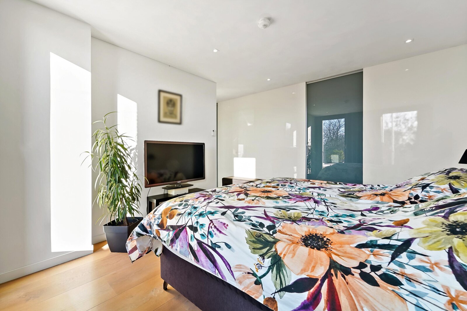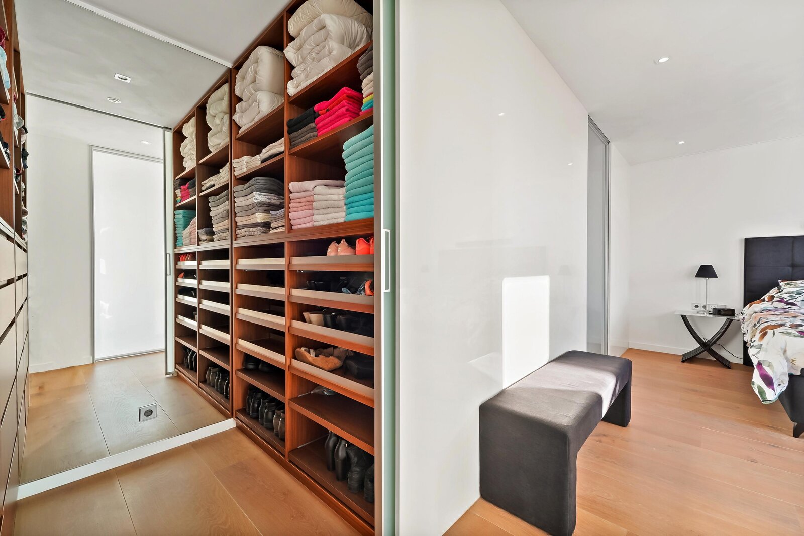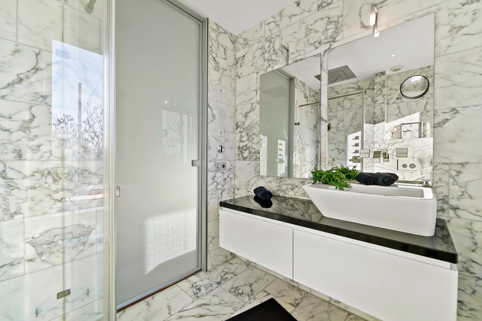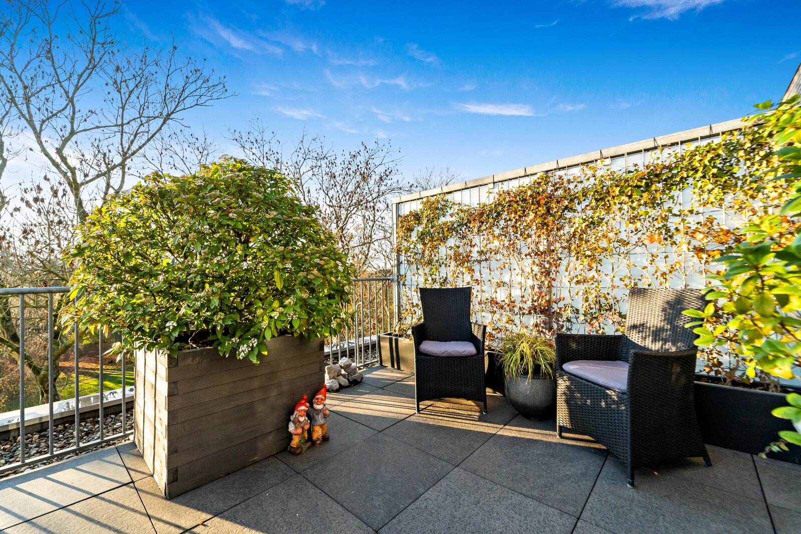Via de stijlvolle entree met garderobe en toilet met fontein betreedt u dit exclusieve appartement. Een elegante doorloop met glazen schuifdeur leidt naar de heerlijk lichte living, voorzien van massief eiken brede vloerdelen en royale schuifpuien naar het riante terras. De zit- en eetruimte worden op natuurlijke wijze van elkaar gescheiden door de indrukwekkende, tweezijdige Boley gas-openhaard, een echte eyecatcher. De luxe keuken is een droom voor elke kookliefhebber, met een royaal kook- en spoeleiland en een volledig geïntegreerde apparatenwand, die dankzij een schuifwand desgewenst subtiel aan het zicht kan worden onttrokken. Aangrenzend bevindt zich de study, deels open verbonden met de living en eveneens direct gelegen aan het terras, de ideale plek om in alle rust te werken of te lezen. Via de gang bereikt u de privé-vertrekken. De hoofdslaapkamer is een oase van rust en luxe, met twee royale inloopkasten en een ensuite badkamer die voelt als een privéspa. Deze uitzonderlijk afgewerkte ruimte biedt een vrijstaand bad, vrijhangend toilet, royale stort- en handdouche met glazen scherm, een elegant wastafelmeubel, handdoekradiator en een raam voor daglichttoetreding vanaf het terras. De comfortabele tweede slaap-/logeerkamer beschikt over een praktische kastenwand, een stijlvolle gastenbadkamer met glazen douchewand, modern wastafelmeubel en handdoekradiator. Tevens een ruime berging met aansluitingen voor was- en droogapparatuur.
