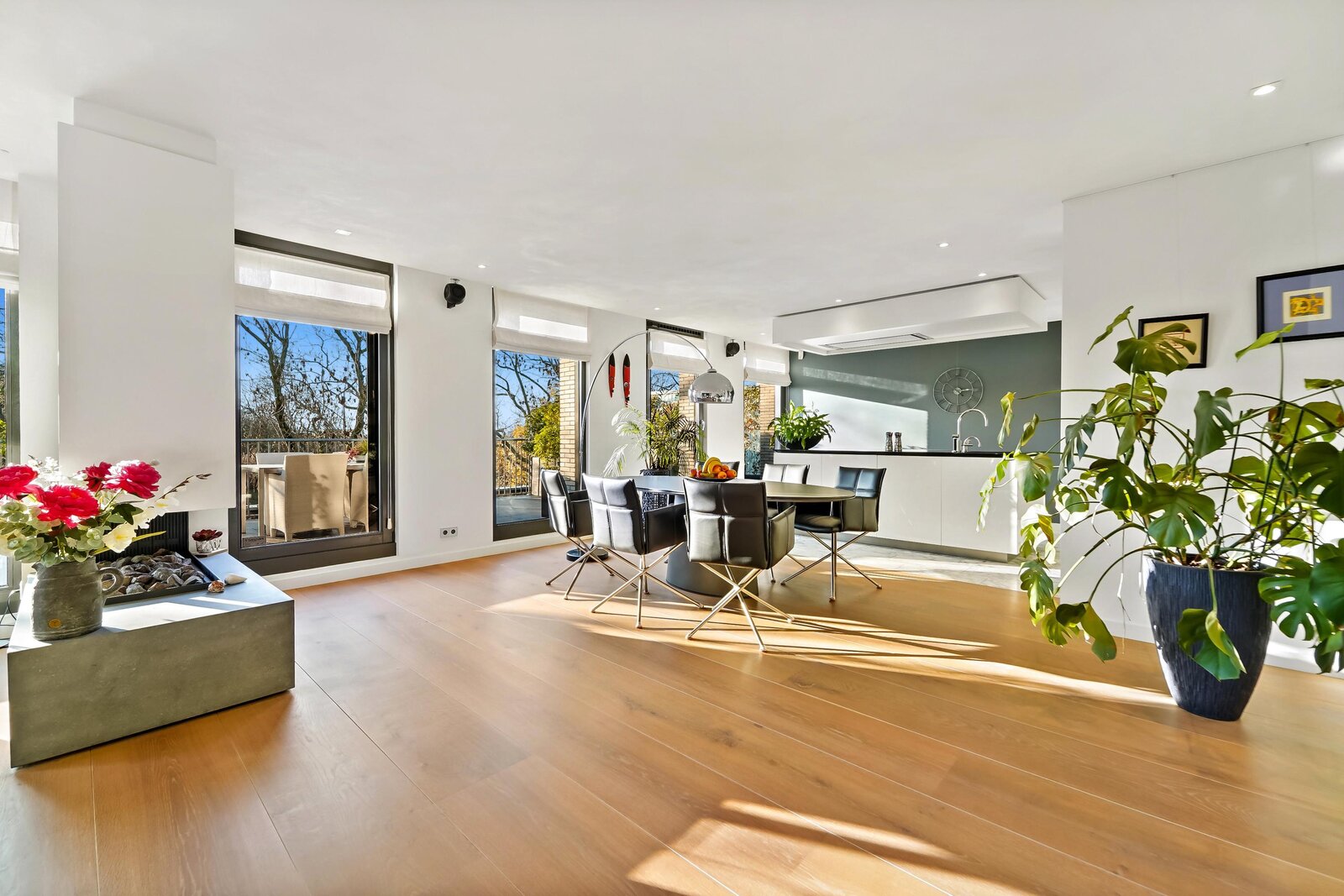 Aan de rand van de Vliet, verscholen in het monumentale park van Buitenplaats Hadriani, bevindt zich dit royale en volledig uitgeruste penthouse, een zeldzame kans voor wie comfort, ruimte en exclusiviteit hoog in het vaandel heeft. Het penthouse biedt een prachtige, lichte living met luxe open keuken, waar koken en ontspannen naadloos samenkomen. Dankzij de slimme indeling en hoogwaardige afwerking voelt elke ruimte ruim, stijlvol en uitnodigend. Met twee comfortabele slaapkamers, twee moderne badkamers en volop opslagruimte is dit penthouse ideaal voor wie royale woonruimte zoekt zonder concessies te doen aan kwaliteit of gemak. Het absolute pronkstuk is het schitterende dakterras van circa 103 m², een privé-oase waar je de hele dag door kunt genieten van rust, zon en het uitzicht op de omliggende natuur van de historische buitenplaats. Een plek die elke dag voelt als vakantie. Uw auto's kunt u parkeren in de garagebox in de onderbouw.
