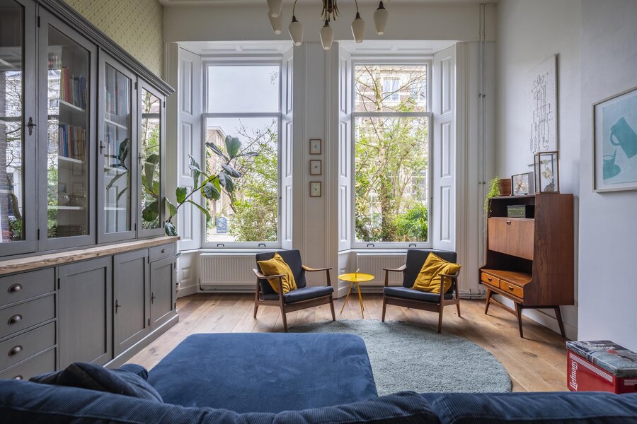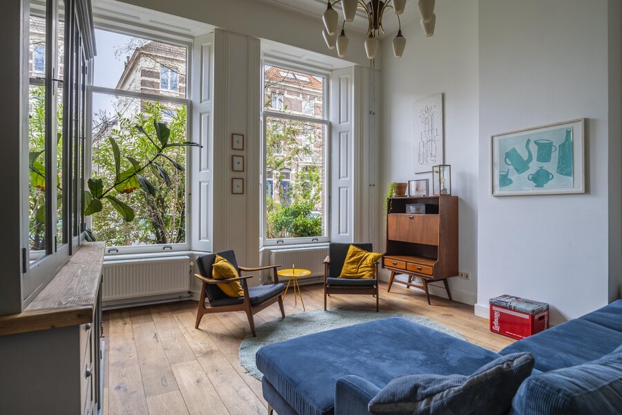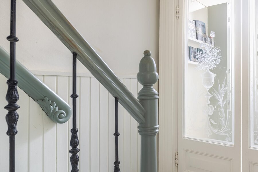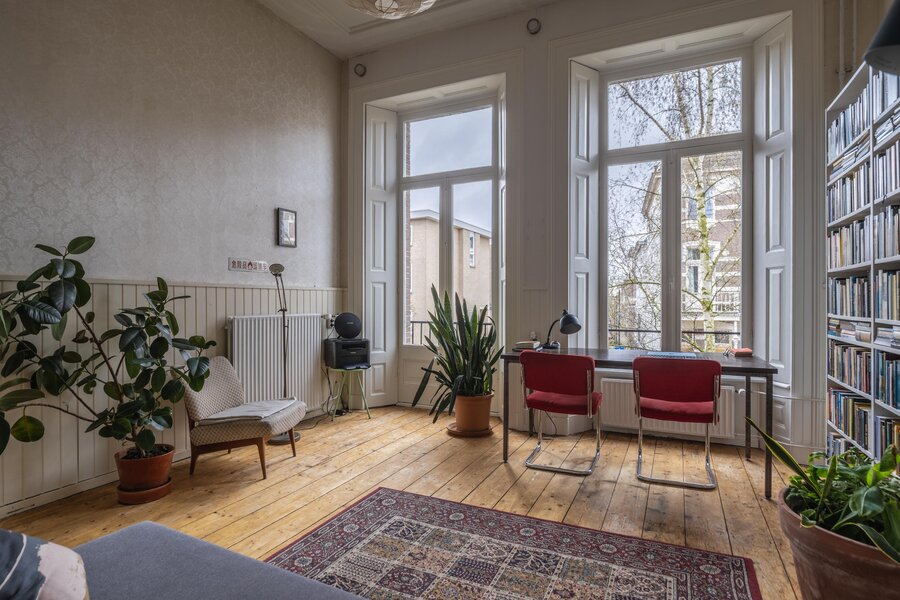 Bij binnenkomst wordt direct de prachtige, originele sfeer voelbaar dankzij de vele bewaard gebleven details, zoals het fraaie geëtst glaswerk, het verfijnde houtsnijwerk in de leuningen, hoge ornement plafond de elegante en-suite deuren en de karakteristieke binnenluiken bij de voorramen. De woning is met zorg onderhouden en beschikt over een vernieuwde keuken die naadloos aansluit bij de stijl van het huis. Daarnaast zorgen de serre en de klassieke granito vloertegels voor extra sfeer en comfort. Met maar liefst vijf slaapkamers en een sfeervolle vide biedt deze woning volop ruimte en mogelijkheden. De kap is volledig geïsoleerd en de woning is nagenoeg geheel voorzien van dubbel glas, wat bijdraagt aan het wooncomfort.
