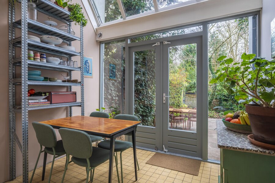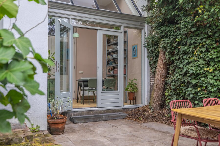 Aansluitend bevindt zich de serre, een heerlijke lichte ruimte met zicht op de tuin en directe toegang naar buiten, ideaal als extra zitruimte of werkplek. De keuken (2020 geplaatst) ligt aan de achterzijde en is modern uitgevoerd en voorzien van diverse inbouwapparatuur, met toegang tot een tweede hal naar achtuitgang. Aan de achterzijde van de woning is een berging gelegen.