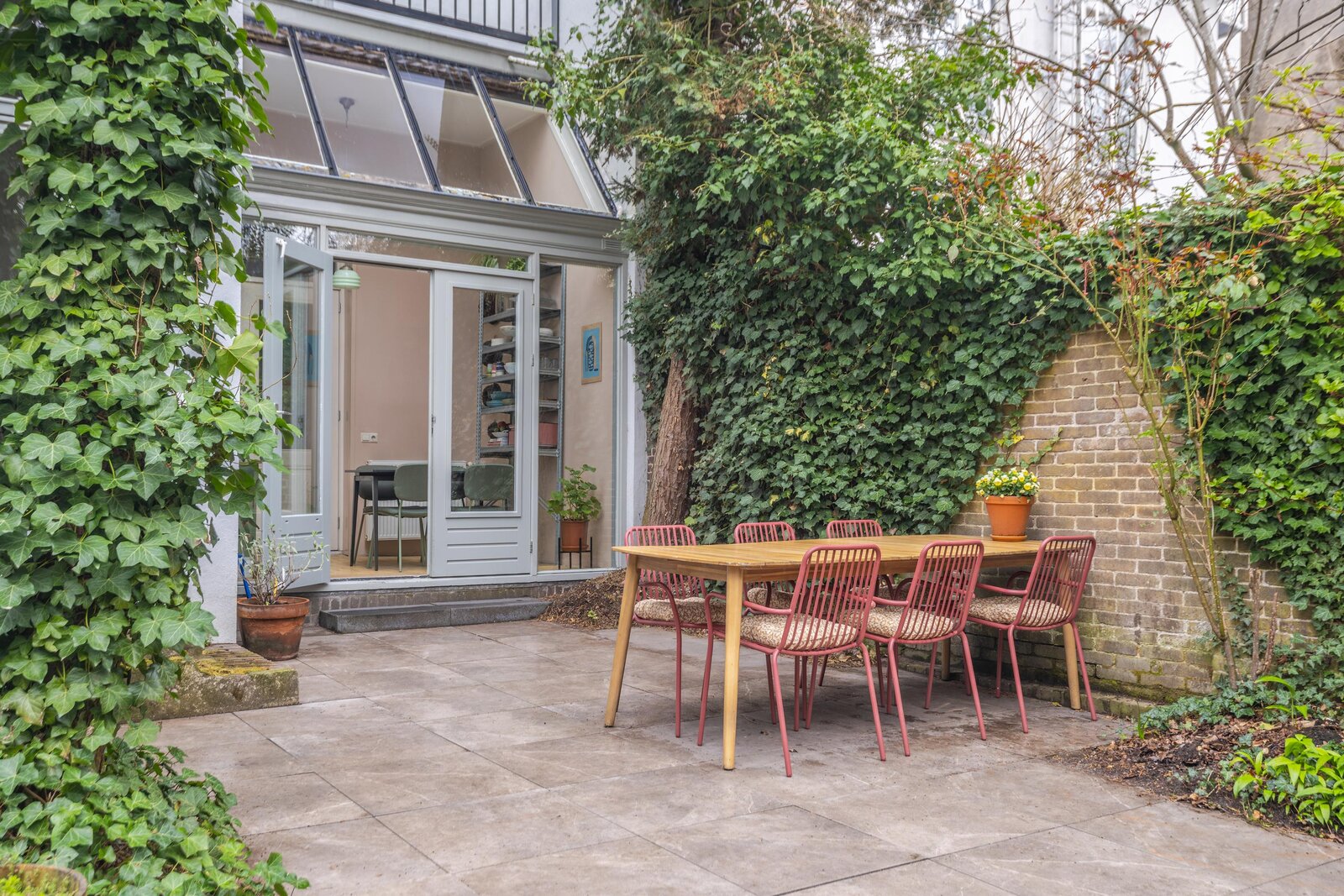 • Ruime, besloten stadstuin met achterom en dakterras;