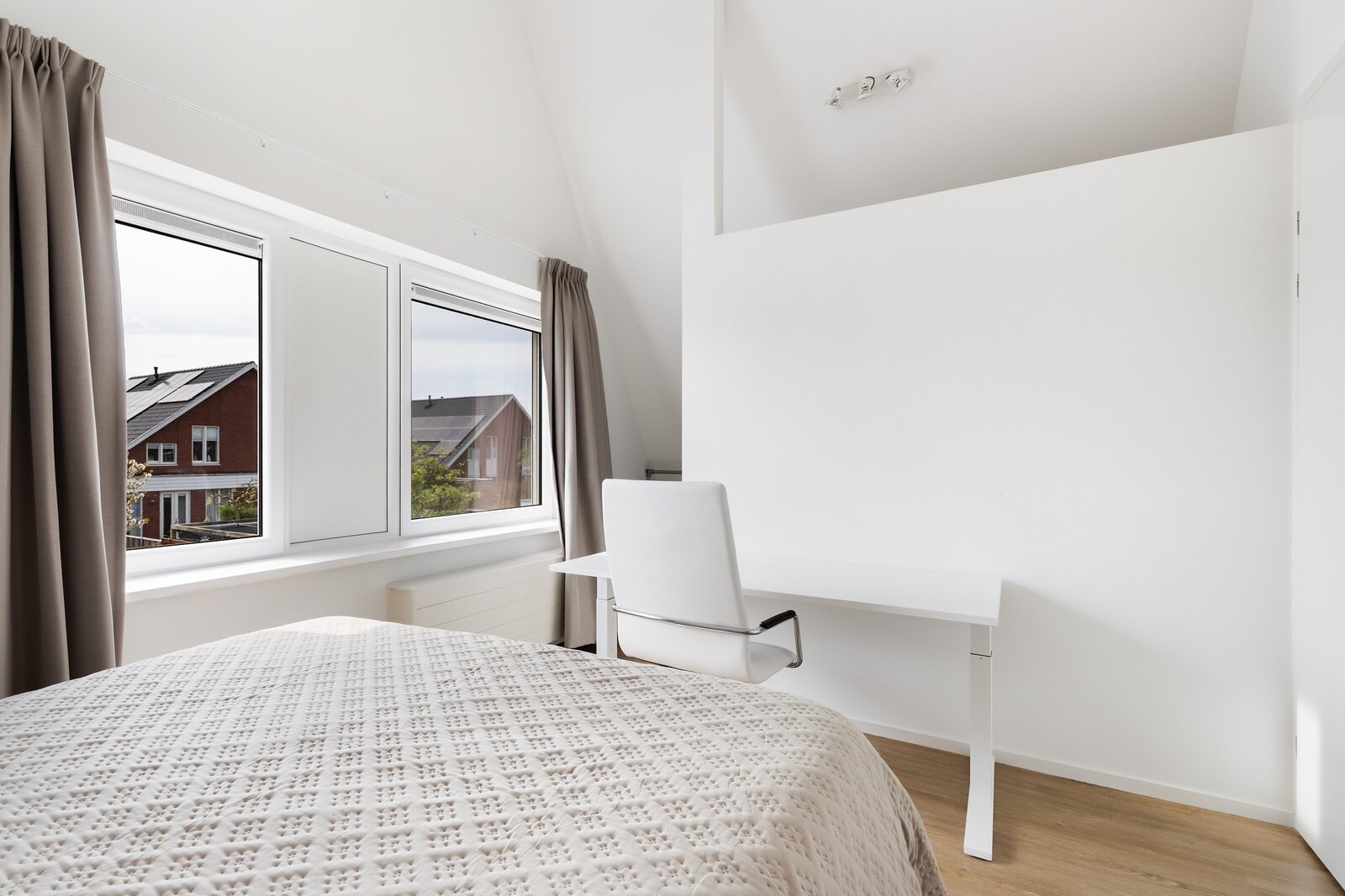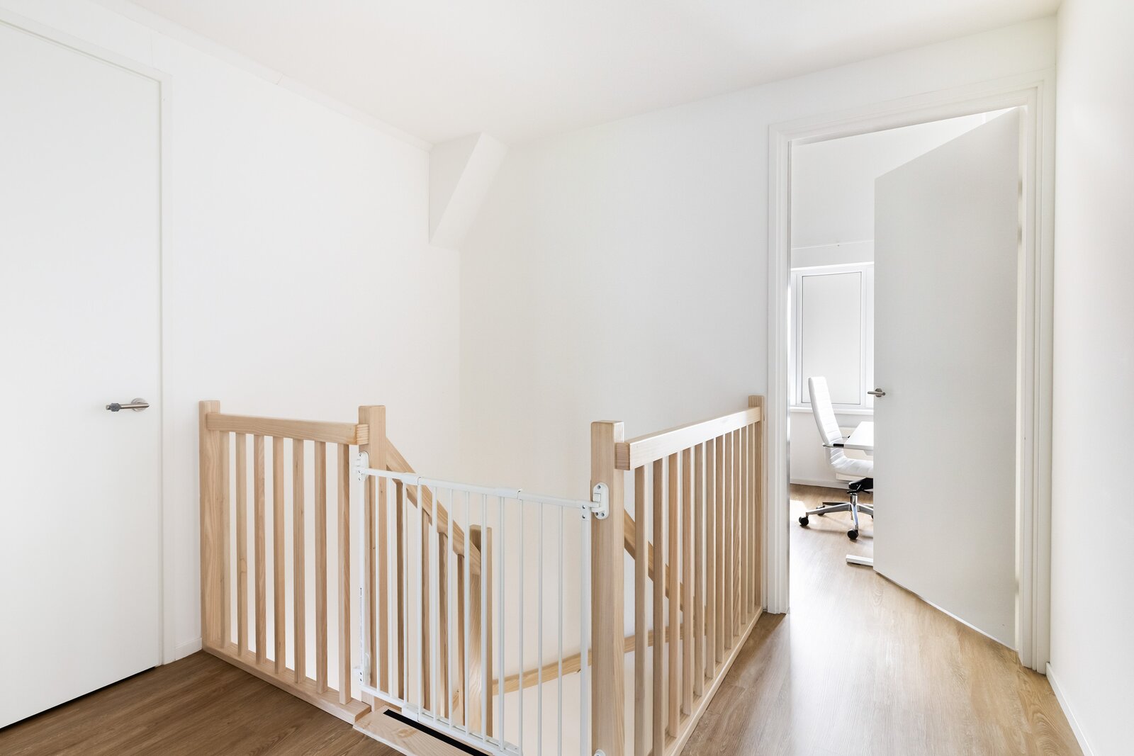 Via de vaste trap bereikt u de overloop die toegang geeft tot drie ruime slaapkamers. De master bedroom is een droom voor elke modeliefhebber, met een luxe walk-in closet. De moderne en strak afgewerkte badkamer (2017) voelt als een wellness-oase, compleet met een riante inloopdouche, een dubbel wastafelmeubel en een tweede hangend toilet.
