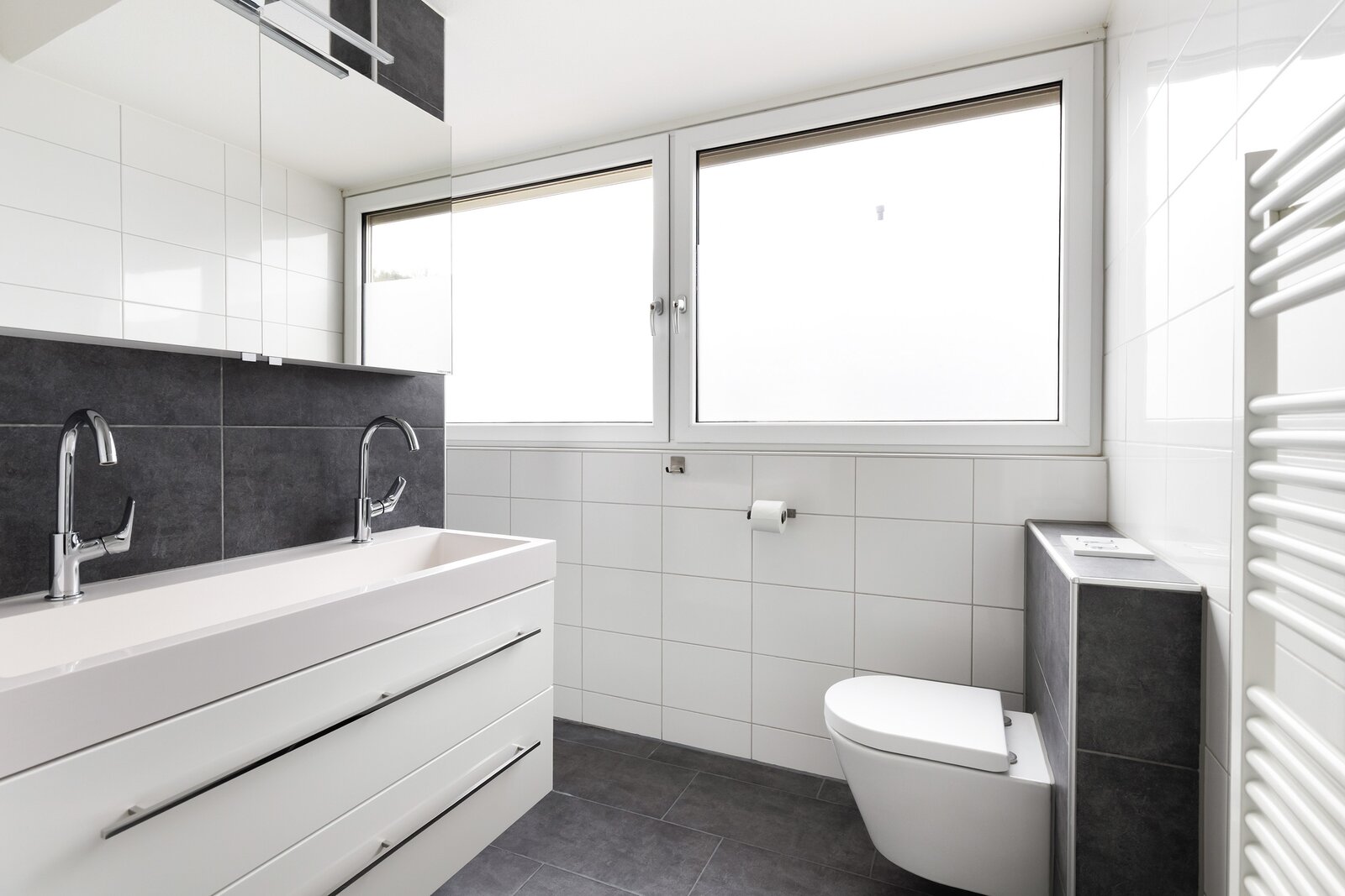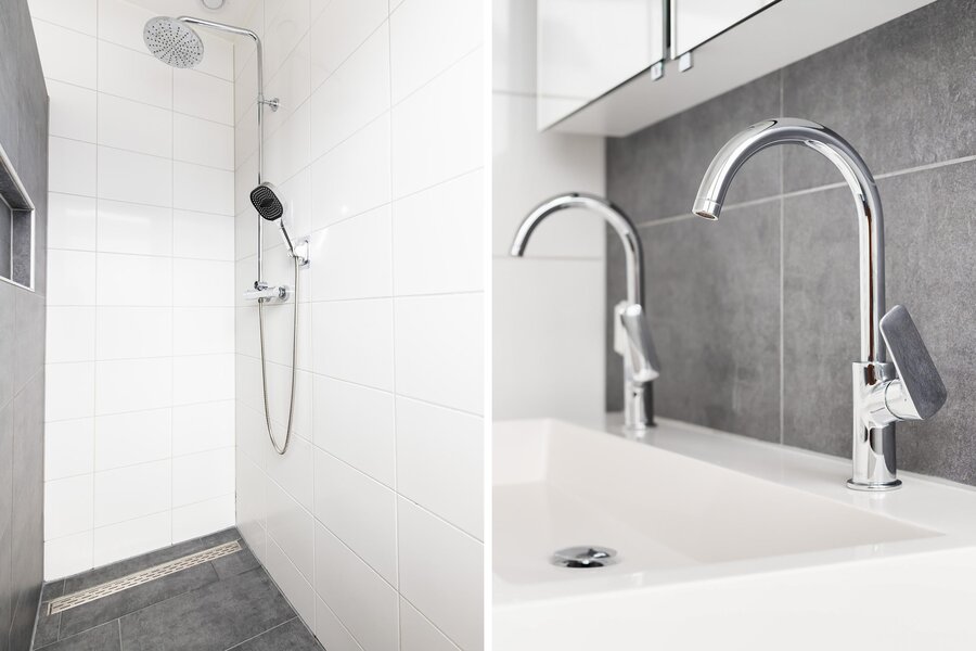 Luxe en moderne afwerking van keuken, badkamer en toilet.