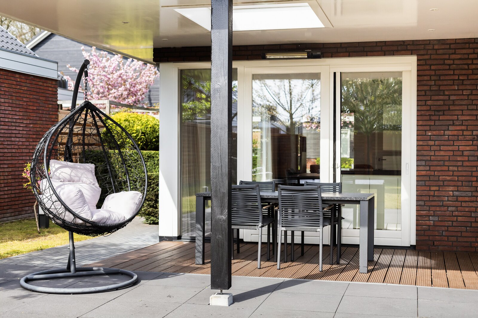 Zonnige tuin op het zuiden met sfeervolle veranda.
