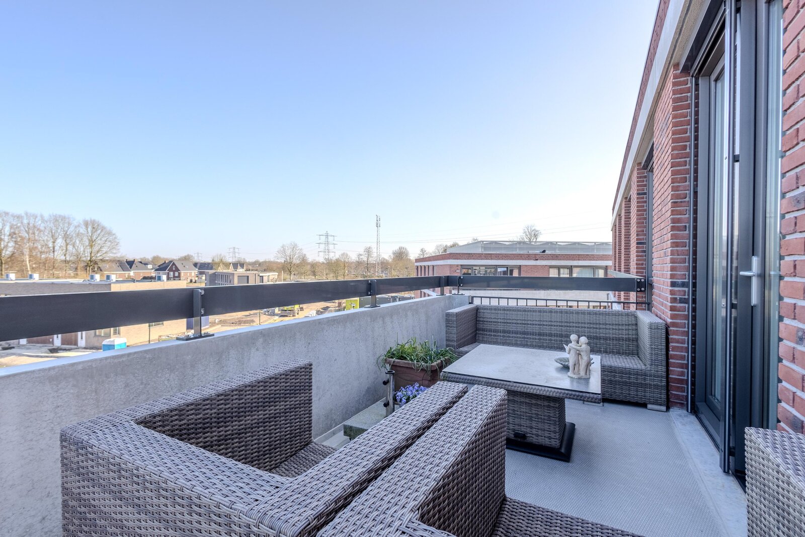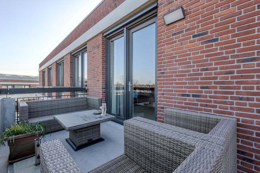 Vanuit de living is het balkon bereikbaar. Dit royale balkon van ca. 11 m² is gelegen op het noordoosten en heeft een fraai groen uitzicht over de Peperstraat en de achterliggende weilanden.