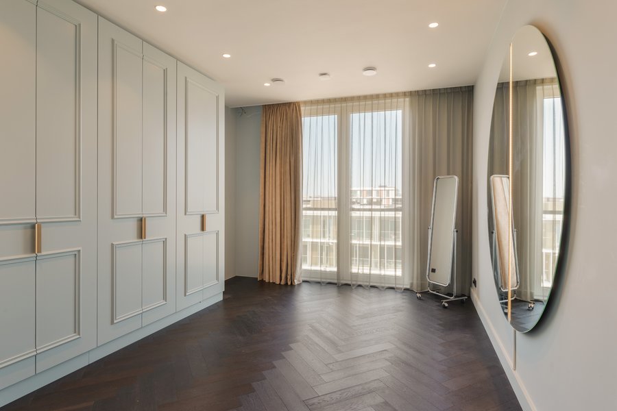 Dit penthouse van 248m2 heeft maar liefst drie ruime slaapkamers en twee prachtige badkamers met ruime inloopdouche. Het is gelegen op de zevende etage en heeft een eigenlift/ entree en een groot dakterras met prachtig uitzicht op het IJ, de Adam toren, het Eye filmmuseum en aan de overkant de karakteristieke pakhuizen en de haven van Amsterdam.
