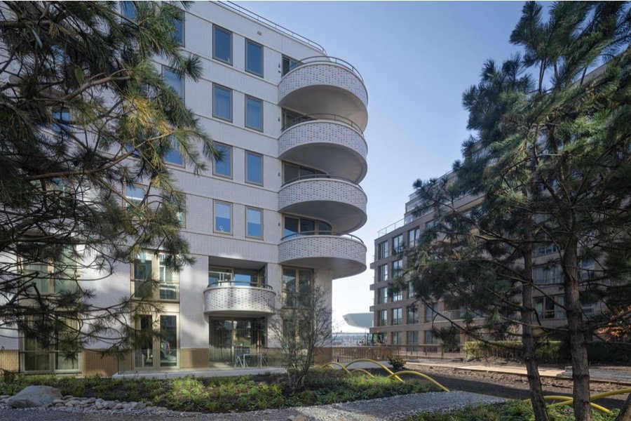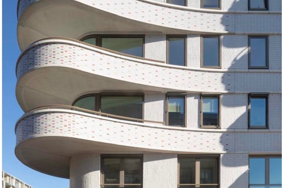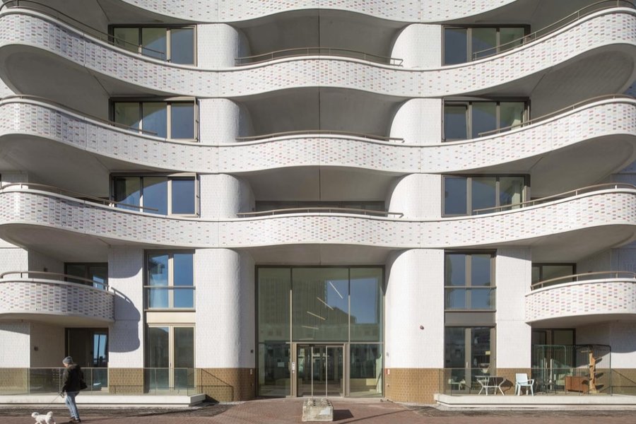 Dit appartementencomplex is een residentiële krachtpatser met een zacht, warm en toegankelijk karakter. De invloed van de Amsterdamse school is duidelijk terug te zien in de warme en ronde vormen van dit appartementencomplex. Door het unieke kleurgebruik is er altijd iets nieuws te ontdekken in de gevel. Het herinnert ook aan de style van de Gaudi gebouwen in Barcelona.
