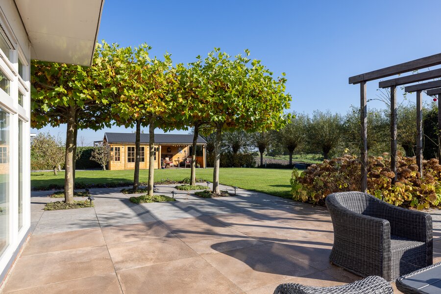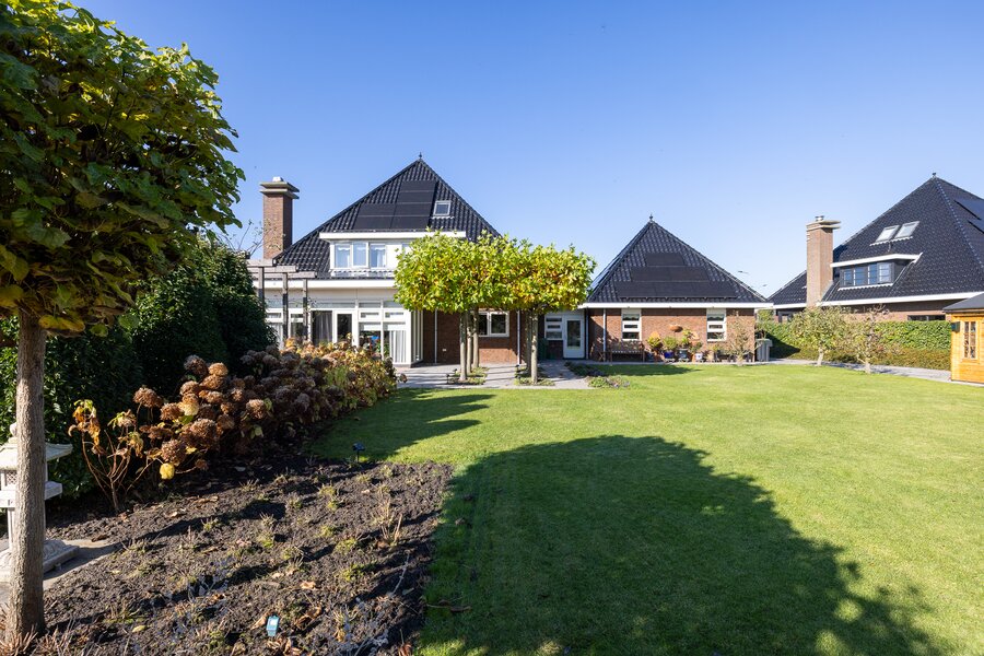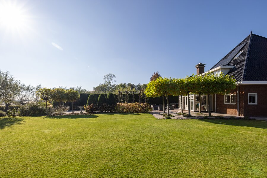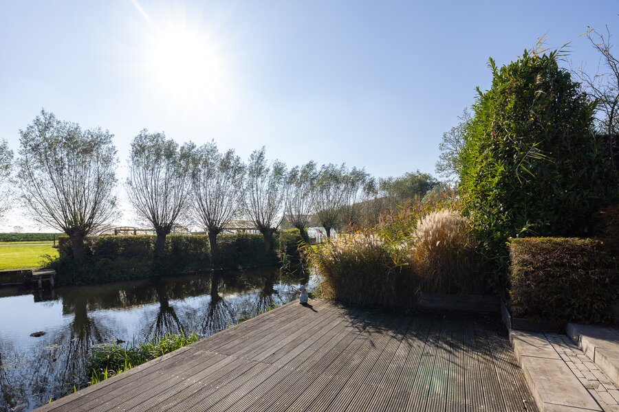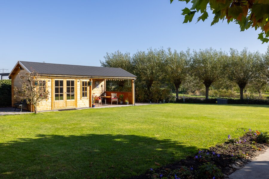 De rondom gelegen tuin is zeer fraai aangelegd en heeft diverse terrassen, waarvan één gelegen aan het water. De vrijstaande ruime berging met een veranda, is ook een heerlijke plek om te genieten van het buitenleven.