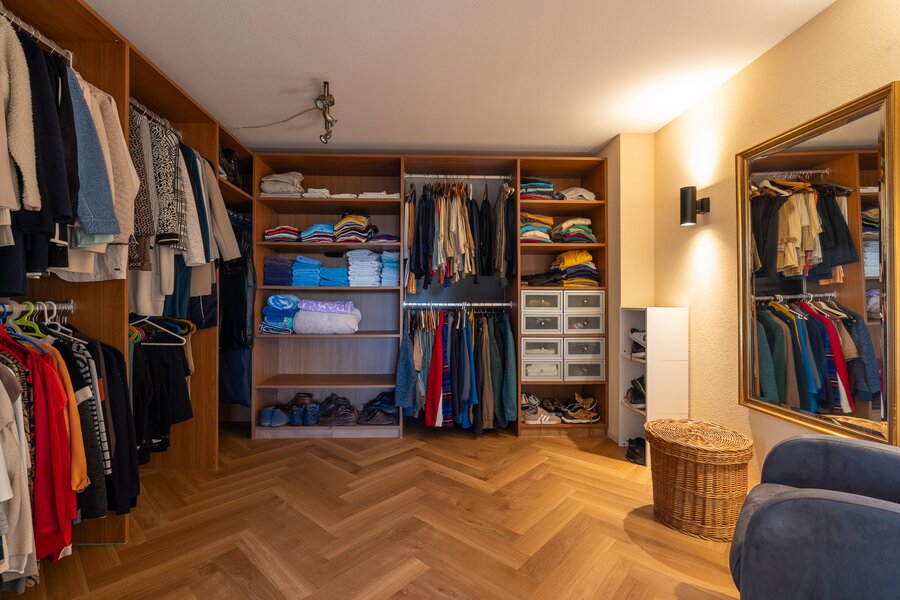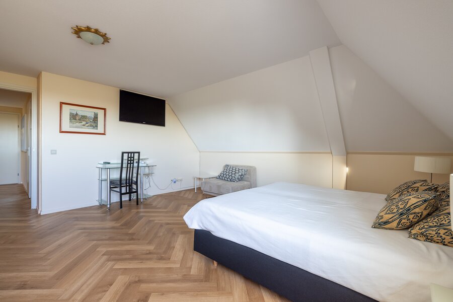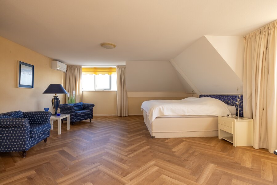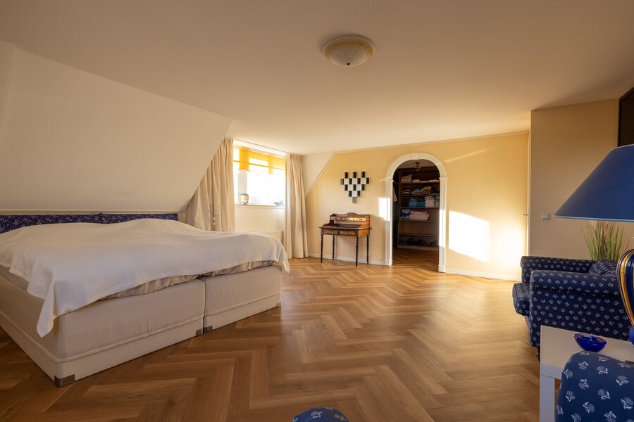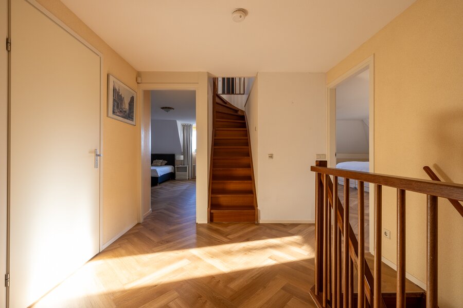De ruime slaapkamer aan de achterzijde is voorzien van dakkapel en berging. De hoofdslaapkamer is tevens zeer royaal en voorzien van airconditioning, twee dakkapellen en een doorloop naar een ruime kleedkamer met inloopkast. Deze kamer is zeer eenvoudig te separeren als derde slaapkamer.