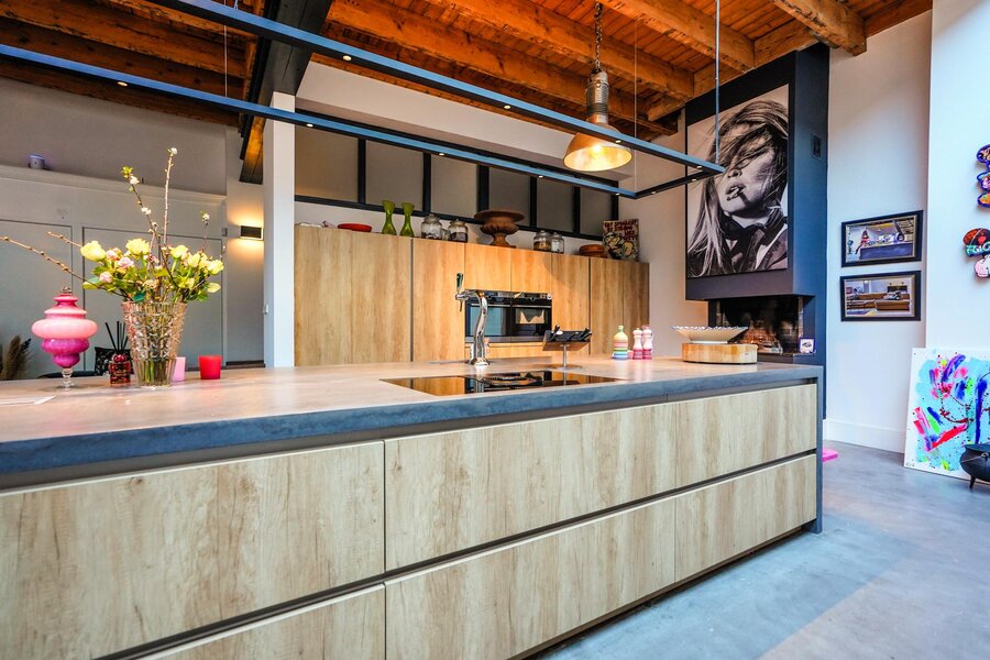 De indrukwekkende woonkamer van maar liefst bijna 23 meter lang en 8,5 meter breed , met behoud van de massale stalen constructiebalken, biedt een enorme ruimte, perfect voor zowel ontspanning als entertainment. De luxe woonkeuken voorzien van alle denkbare apparatuur is een droom voor elke kookliefhebber.