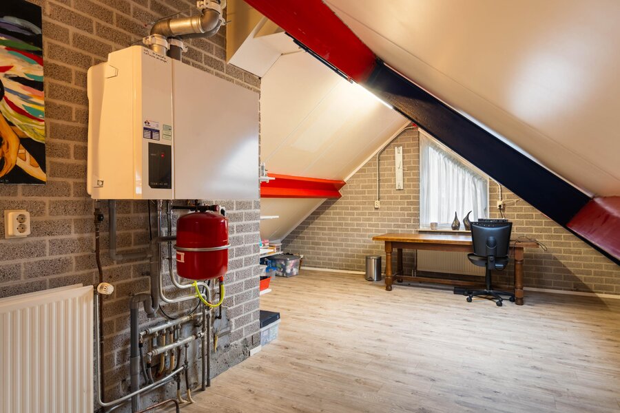 De hobbyruimte is voorzien van een tweetal te openen dakvenster met rolgordijn, een te openen raampartij en biedt plaats aan de opstelling van de CV-ketel. De ruimte beschikt over veel praktische bergruimte en is geschikt voor diverse doeleinden zoals het realiseren van een extra slaapkamer.