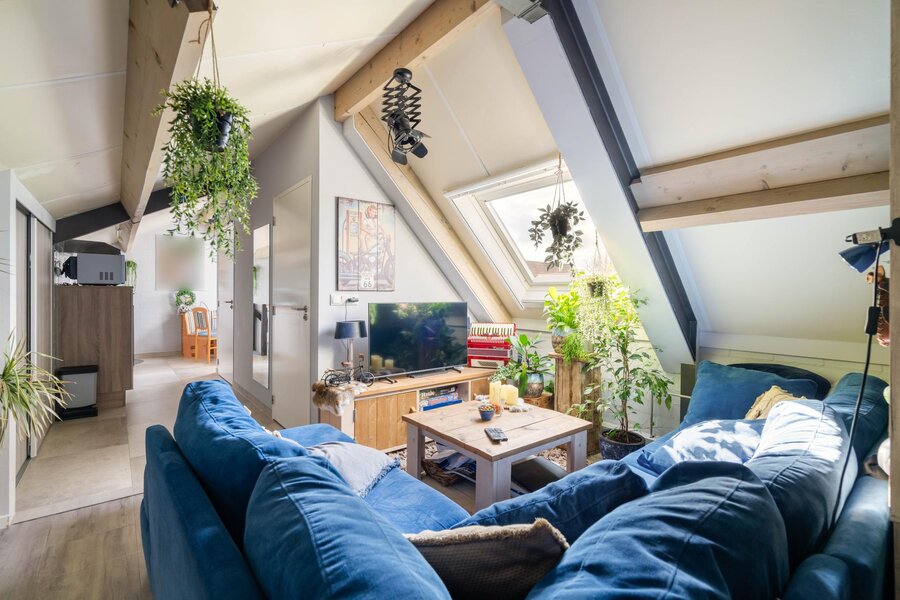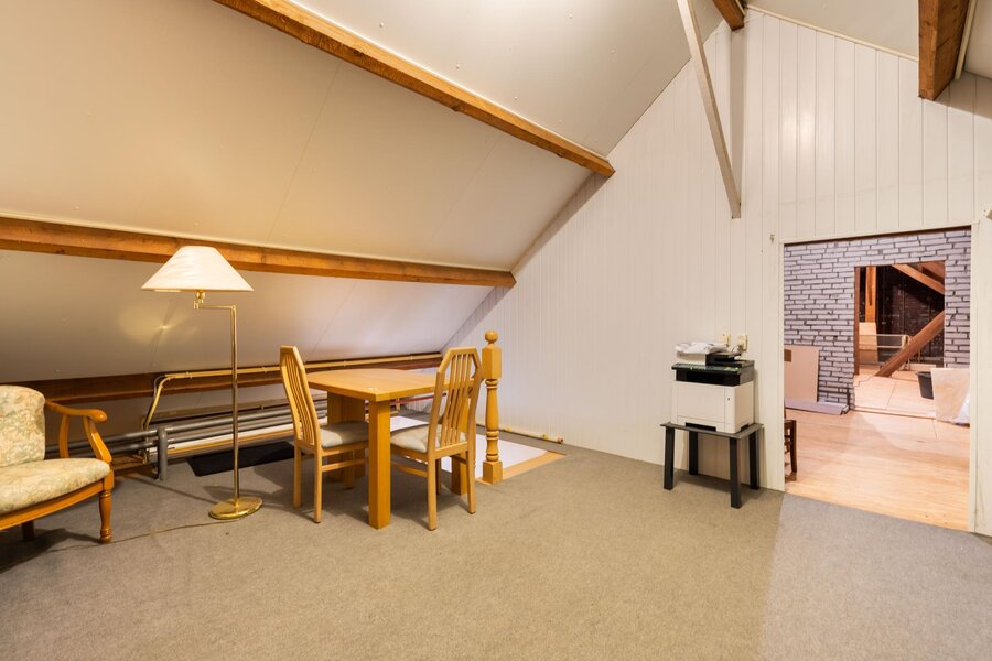 De overloop is afgewerkt met vloerbedekking. Vanuit de overloop zijn de 2e slaapkamer en de riante bergzolder toegankelijk. De overloop en bergzolder zijn voor het grootste gedeelte nog onafgewerkt maar bieden een enorme potentie voor het realiseren van extra (slaap)kamers.