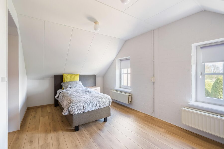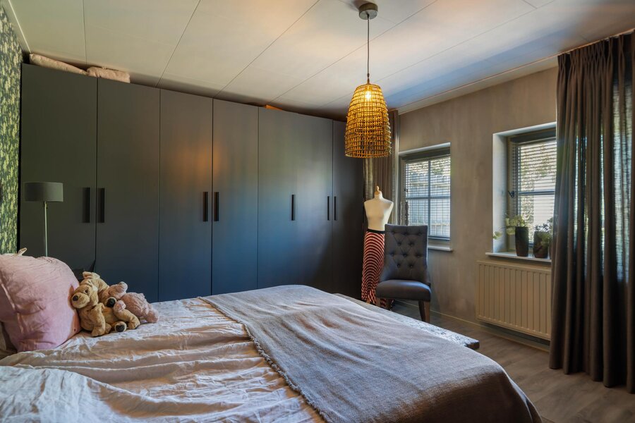 Ruime (hoofd)slaapkamer, gelegen aan de achterzijde van de woning. De kamer is afgewerkt met vloerbedekking en biedt voldoende ruimte voor een (tweepersoons)bed en een kledingkast.