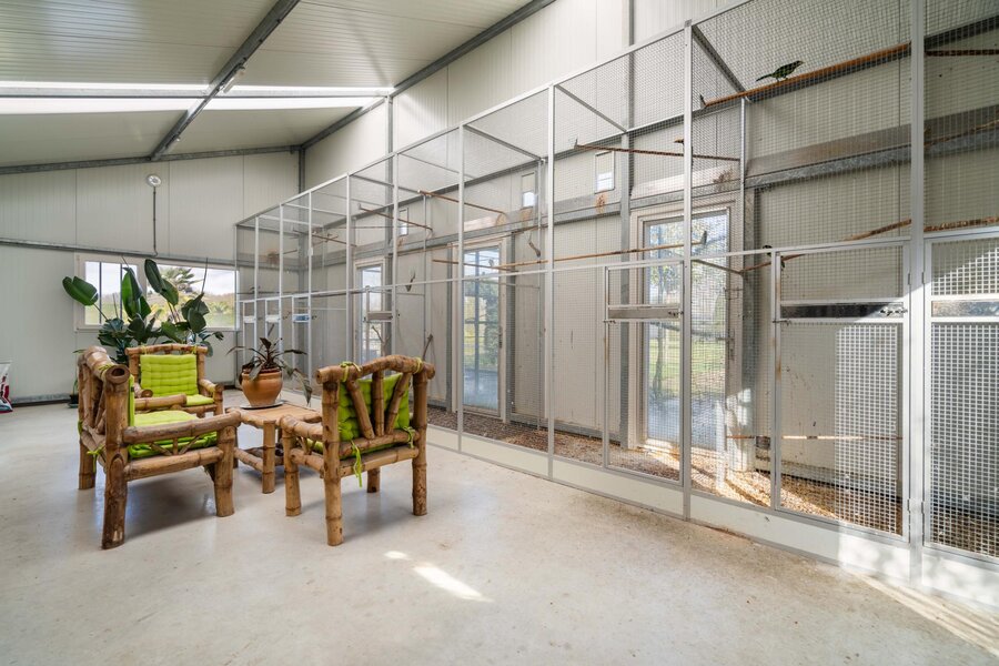 Aan de linkerzijde van de tuin is recent een multifunctioneel vrijstaand bijgebouw gerealiseerd. Het bijgebouw bestaat momenteel uit een binnen- en buitenvolière. De buitenvolière kan worden gedemonteerd. Het bijgebouw is volledig geïsoleerd (dak-, vloer- en wandisolatie) en heeft kunststof kozijnen met HR++ beglazing. De betonnen vloer, zowel binnen als buiten is voorzien van vloerverwarming waardoor de buitenvolière uitermate geschikt is als uitbreiding van het bijgebouw. Het bijgebouw beschikt over een wastafel, een eigen groepenkast en is voorzien van een 'NIBE' warmtepomp. Het bijgebouw biedt tevens plaats aan een van de omvormers van de 18 zonnepanelen (2019).