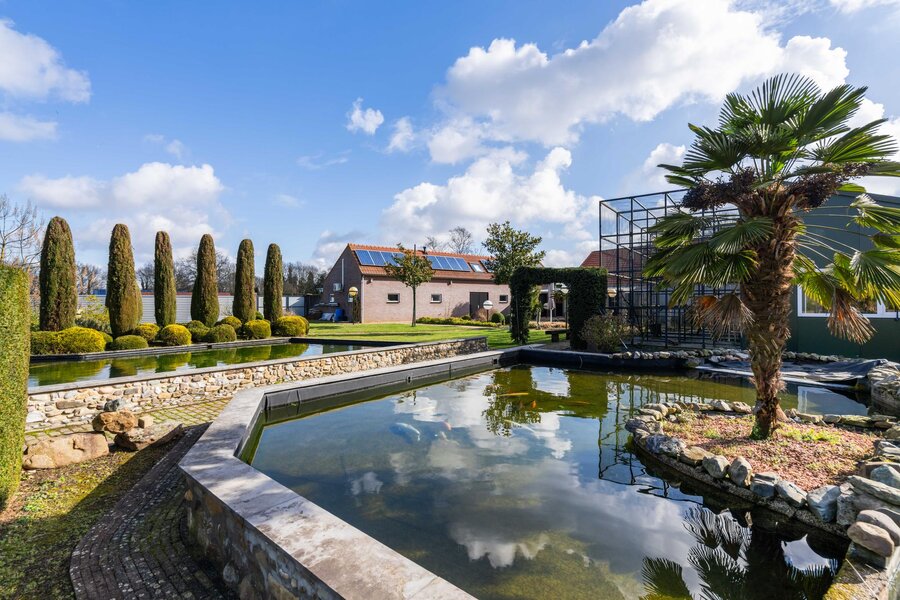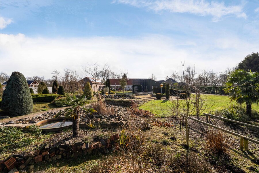 - Riante gerenoveerde woonboerderij met een grote vrijstaande garage met bovenliggende studio, multifunctioneel vrijstaand bijgebouw (2019) en een royale achtertuin met een overdekt terras, vijverpartijen, volières en veel volwassen groen.