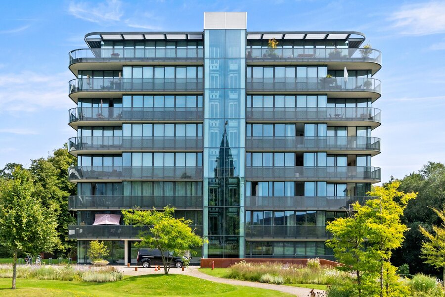 Op de 2e etage van het gebouw Lage Duin gelegen voormalig vijfkamerhoekappartement van ca. 153 m2 grenzend aan het landgoed Oostduin-Arendsdorp, inclusief twee parkeerplaatsen in de garage.