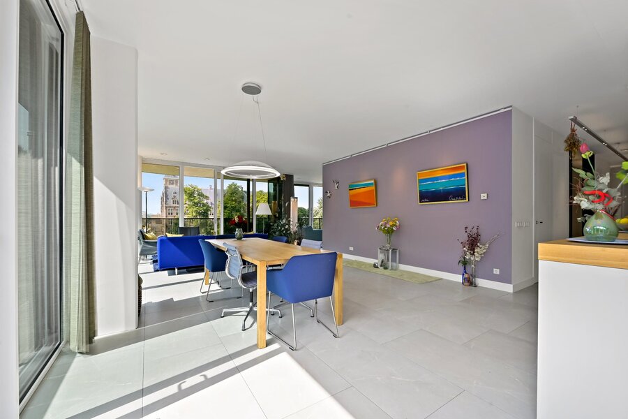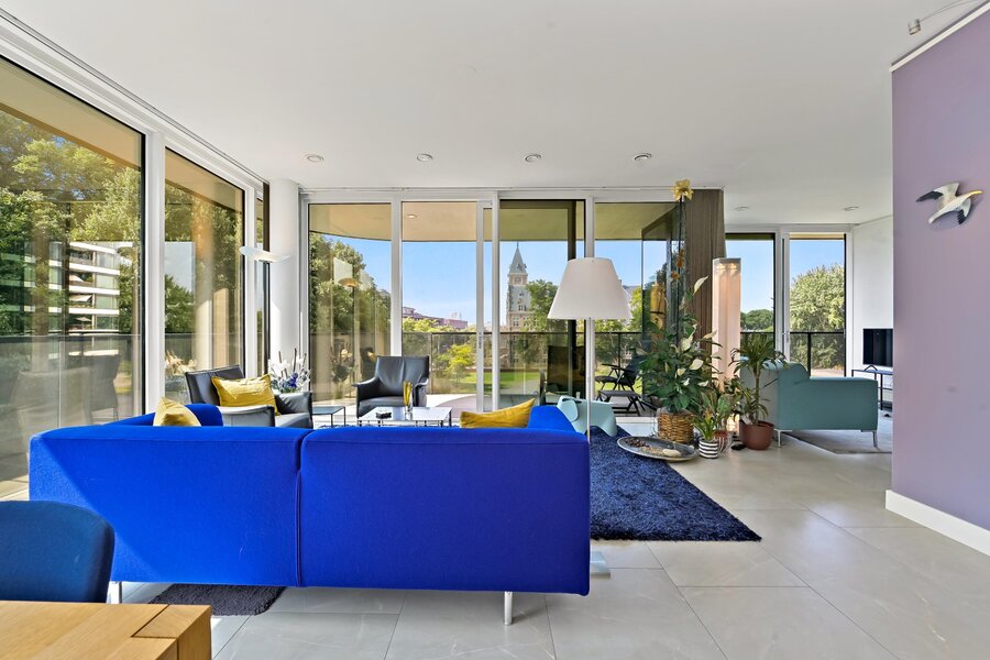 Vanuit de woonkamer kunt u genieten van een vergezicht richting de Carel van Bylandtlaan en zelfs de toren van het Vredespaleis is te zien.