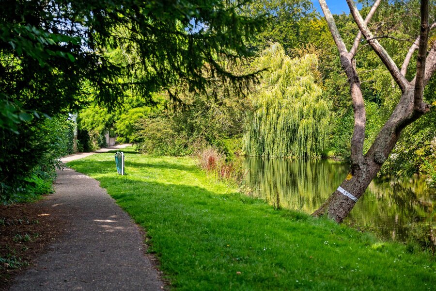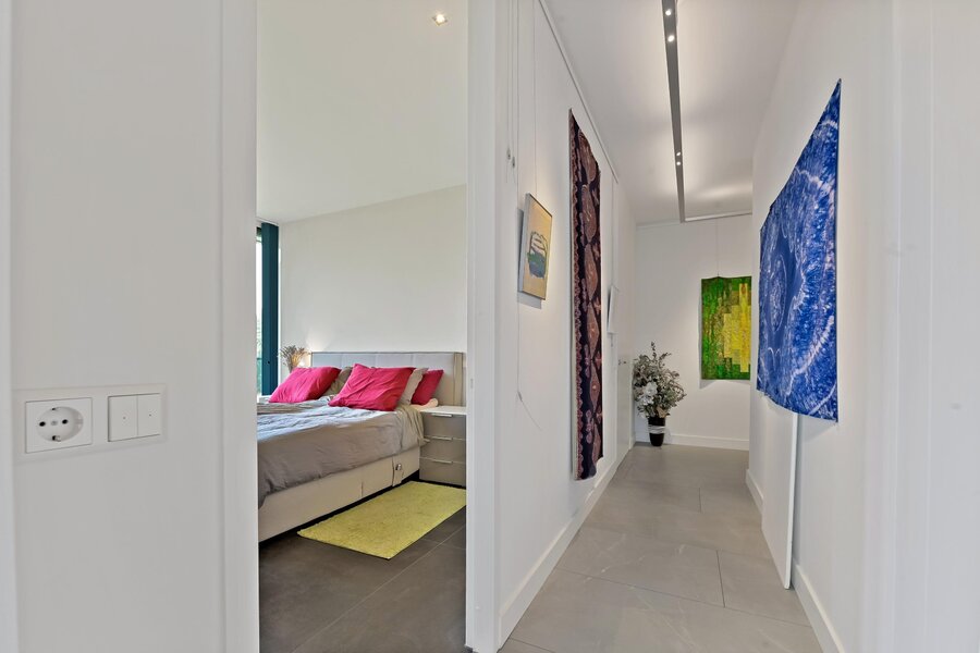 Van oorsprong waren er drie slaapkamers. Tijdens de bouw is de voorzijslaapkamer samengevoegd met de woonkamer om te gebruiken als study. Deze kamer heeft als extra een praktische inloopkast met legplanken. Door deze aanpassing is de slaapkamer eenvoudig te bereiken uit de woonkamer.